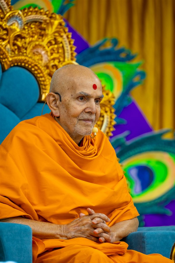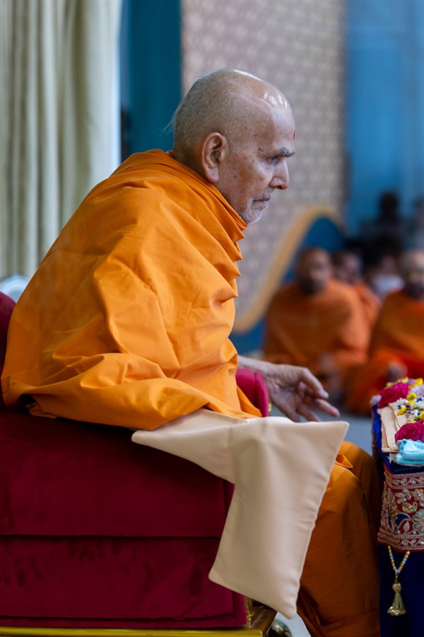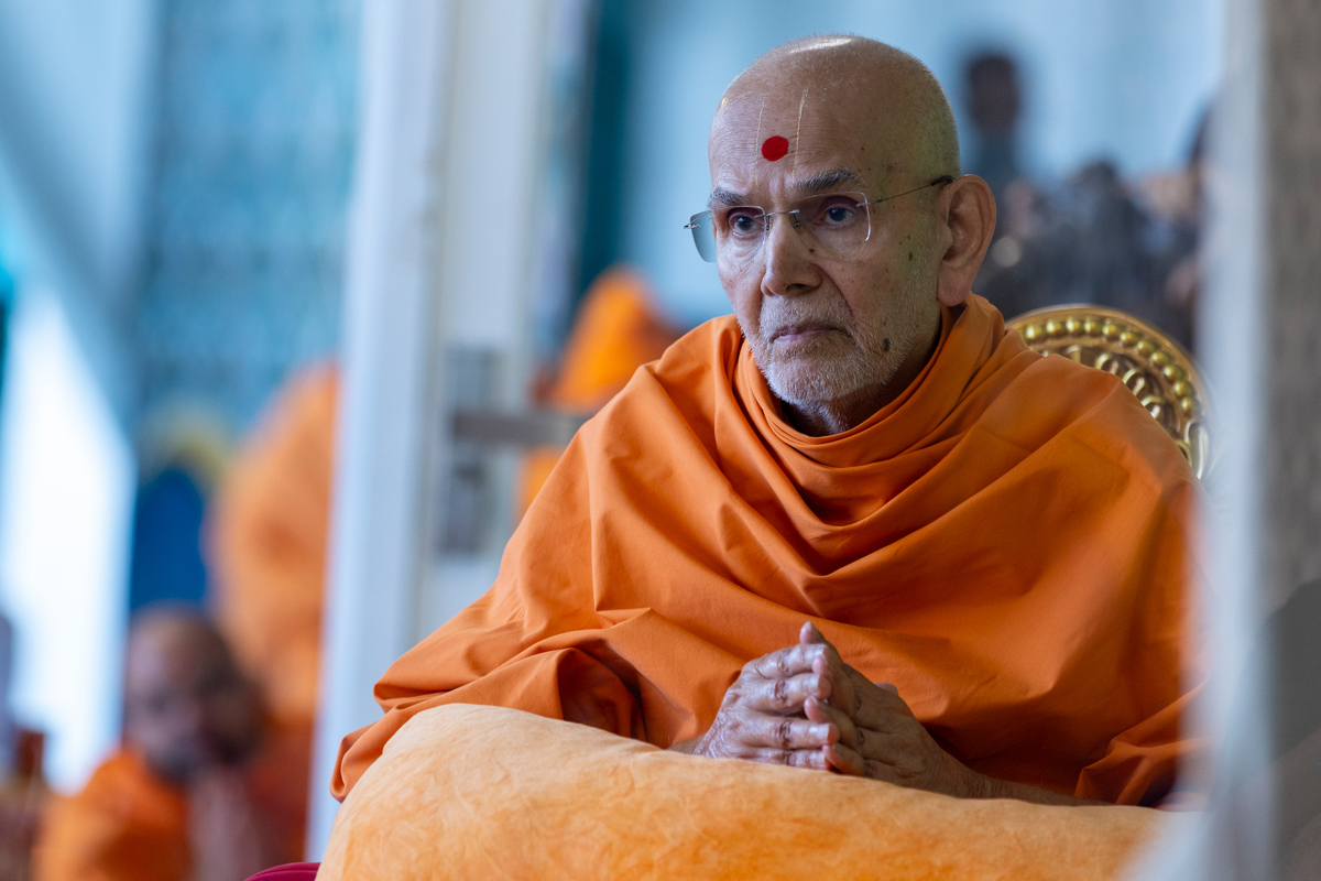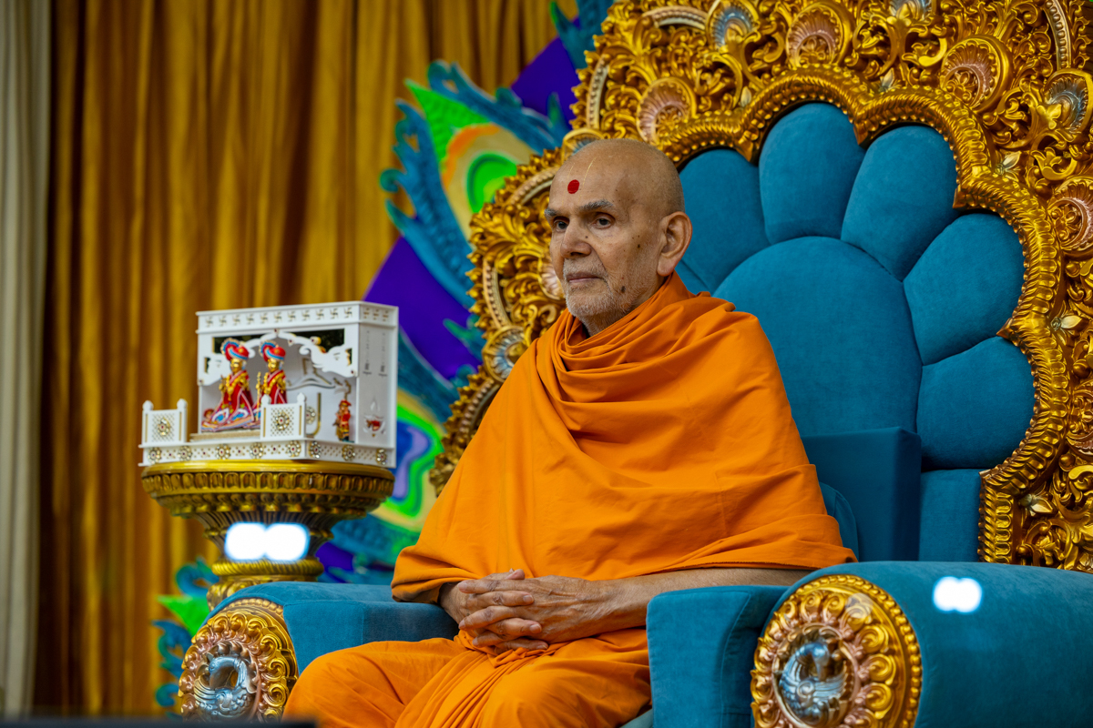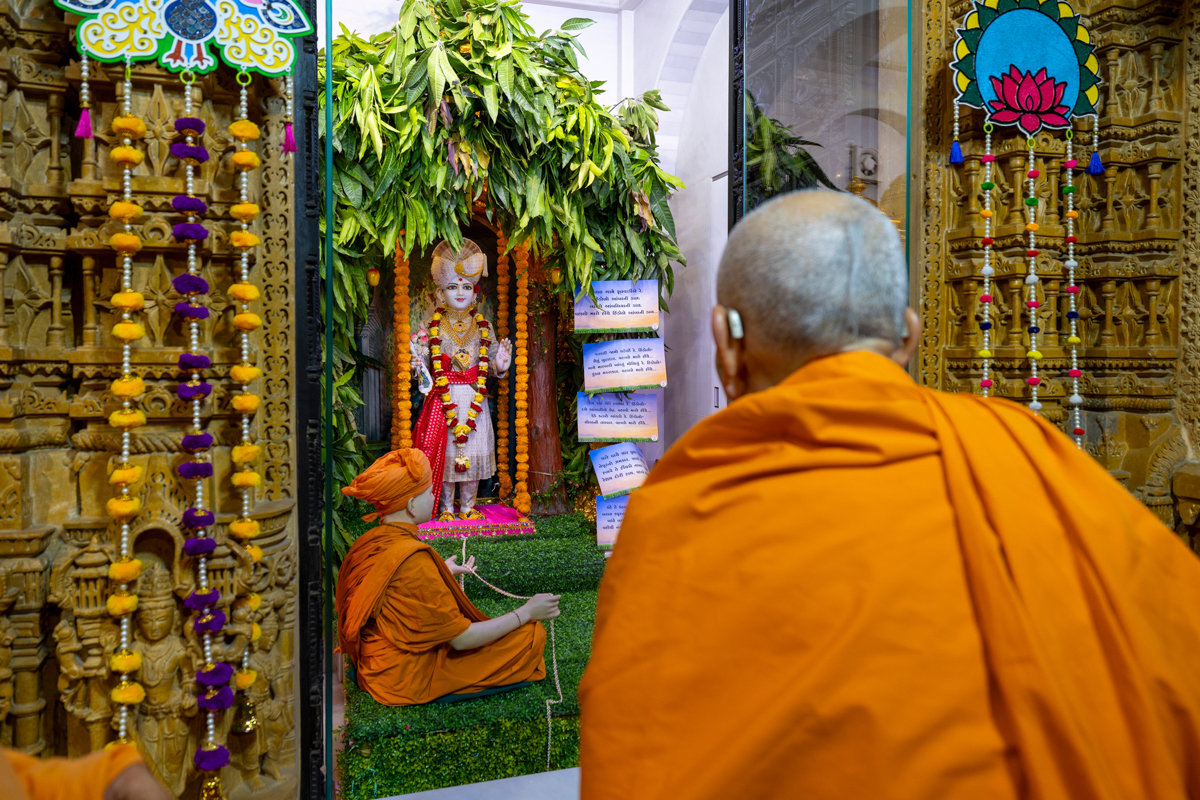 Swamishri engrossed in darshan of Shri Ghanshyam Maharaj