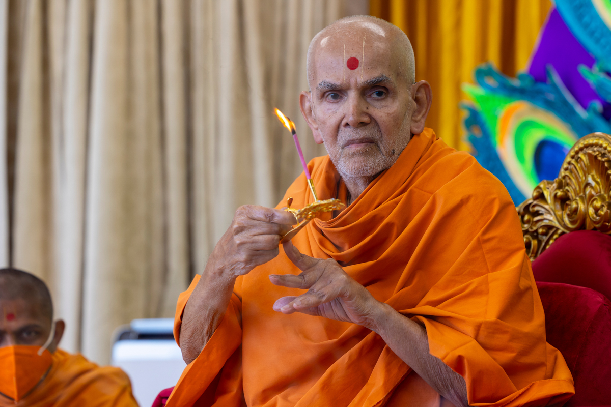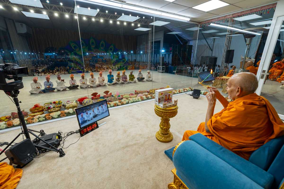Pujya Ghanshyamcharan Swami and Pujya Viveksagar Swami performs the arti