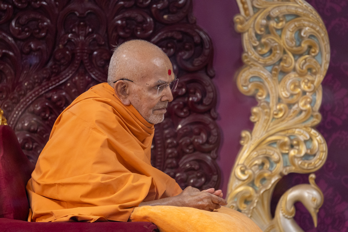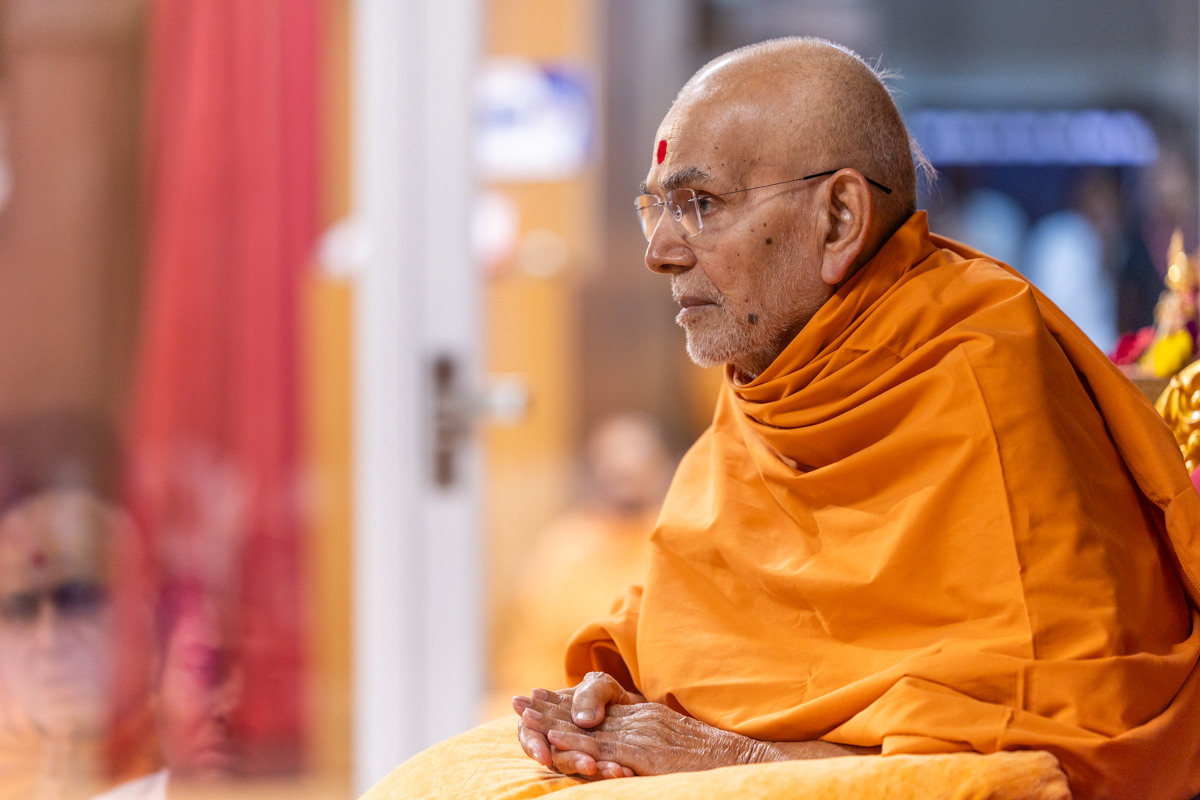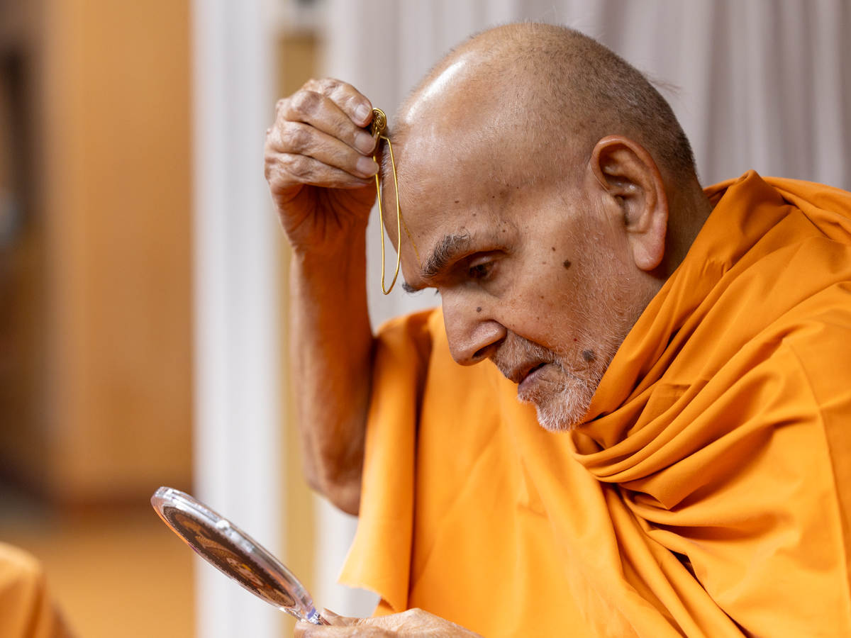 Swamishri engrossed in darshan of Shri Harikrishna Maharaj and Shri Gunatitanand Swami Maharaj