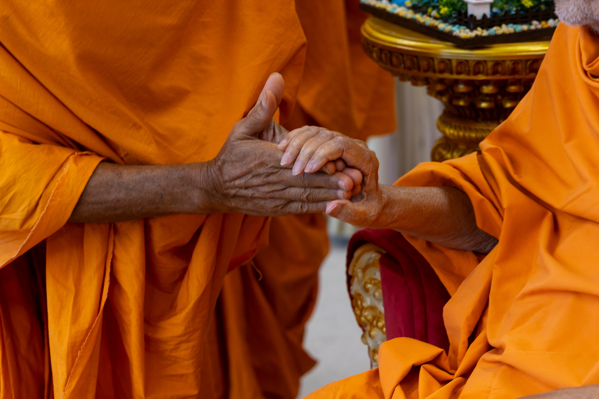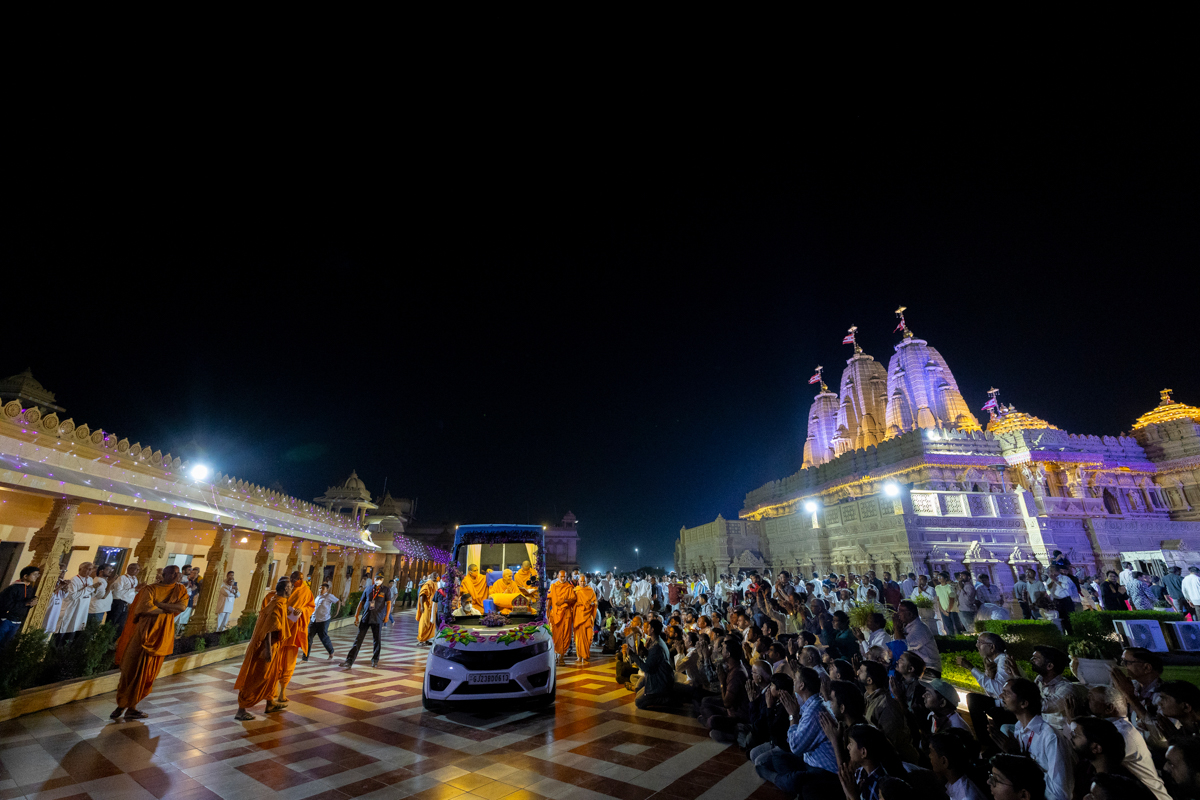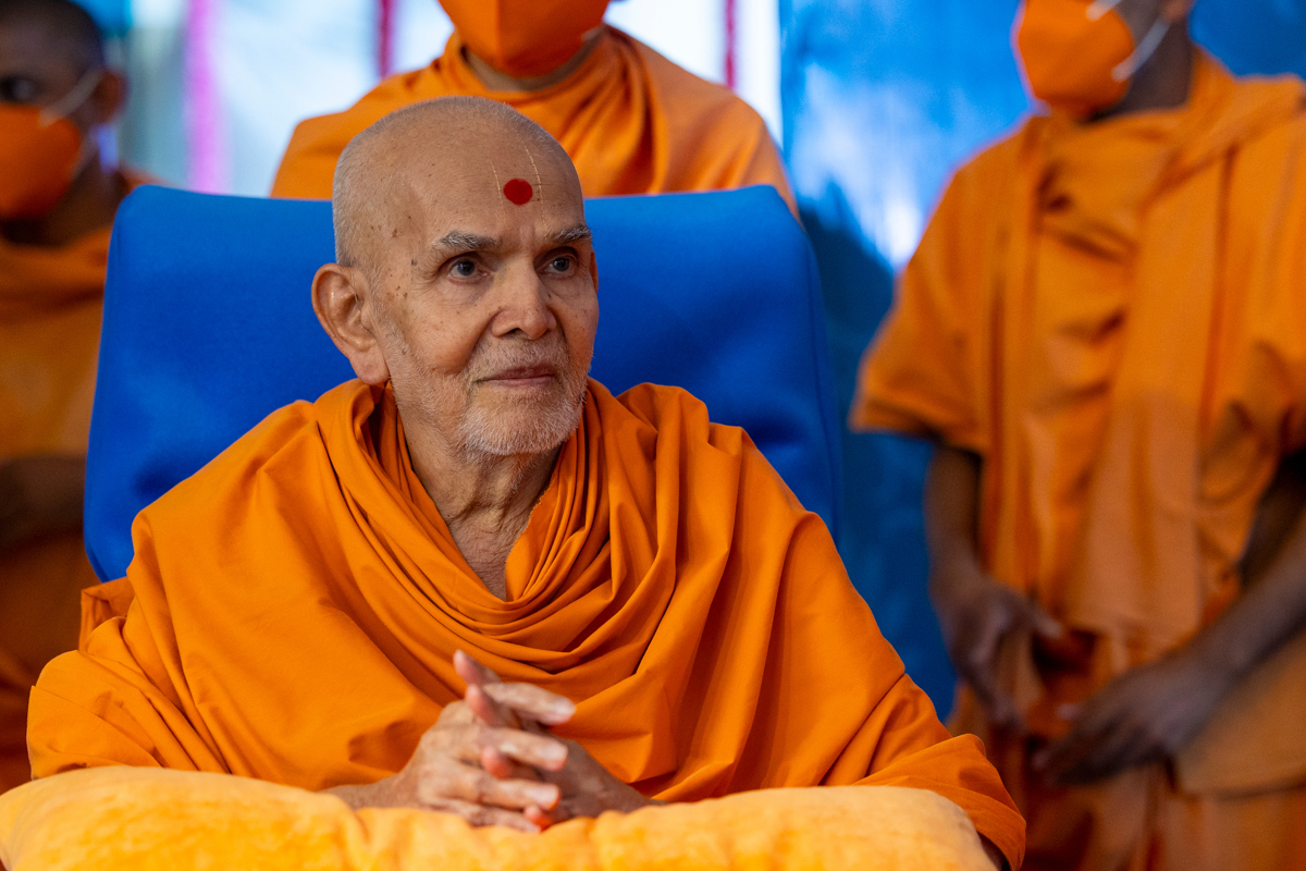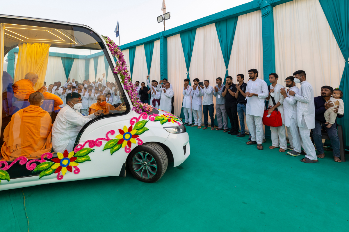 Param Pujya Mahant Swami Maharaj on his way to perform his daily puja