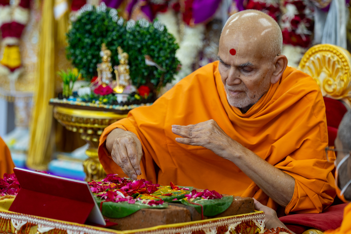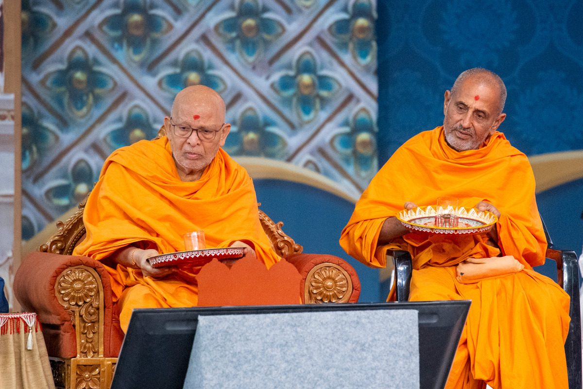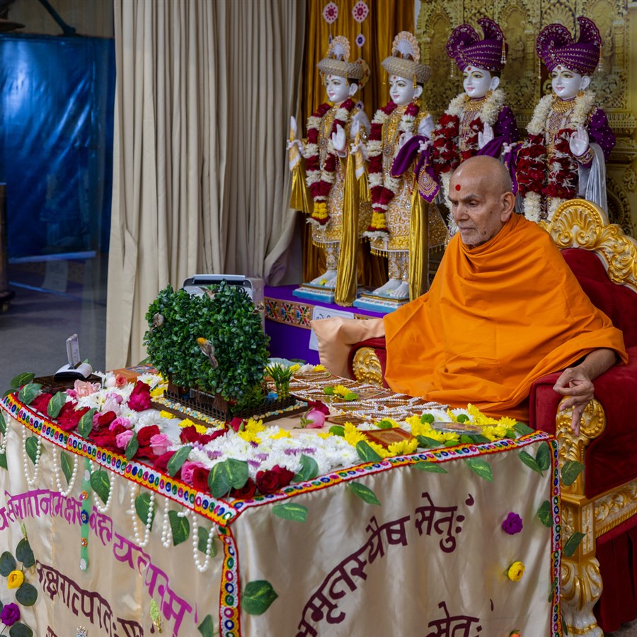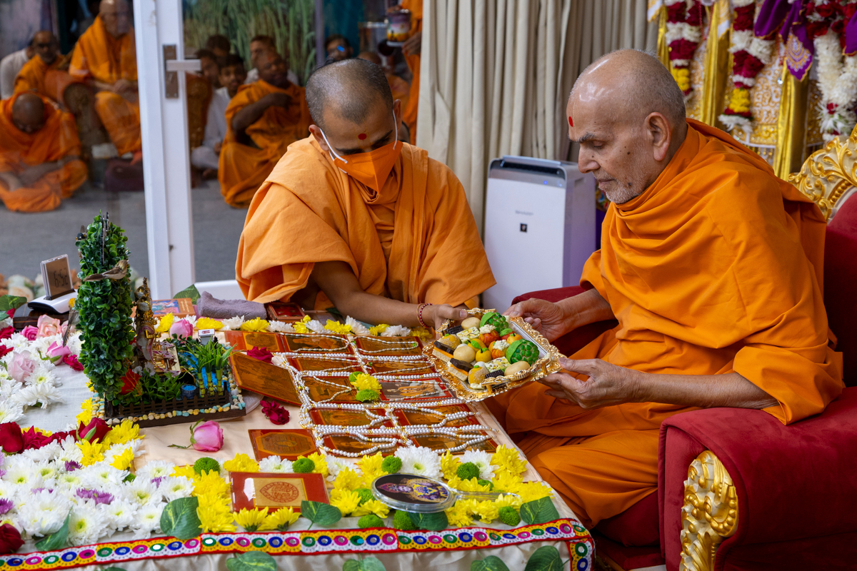 Swamishri offers thal to Brahmaswarup Pramukh Swami Maharaj