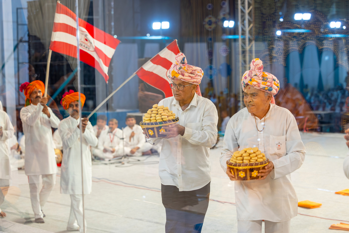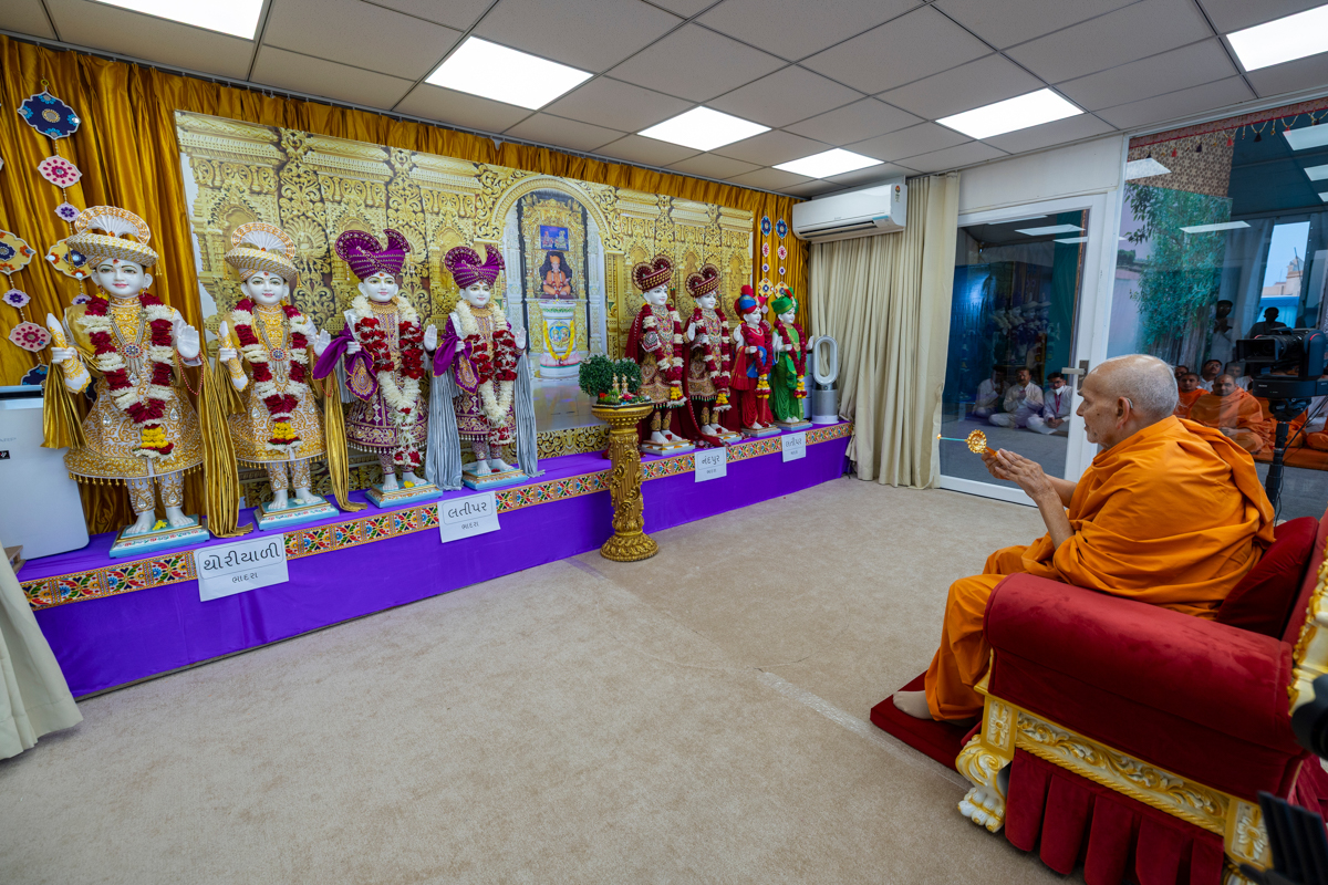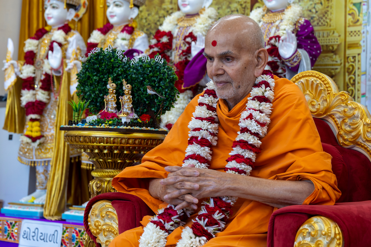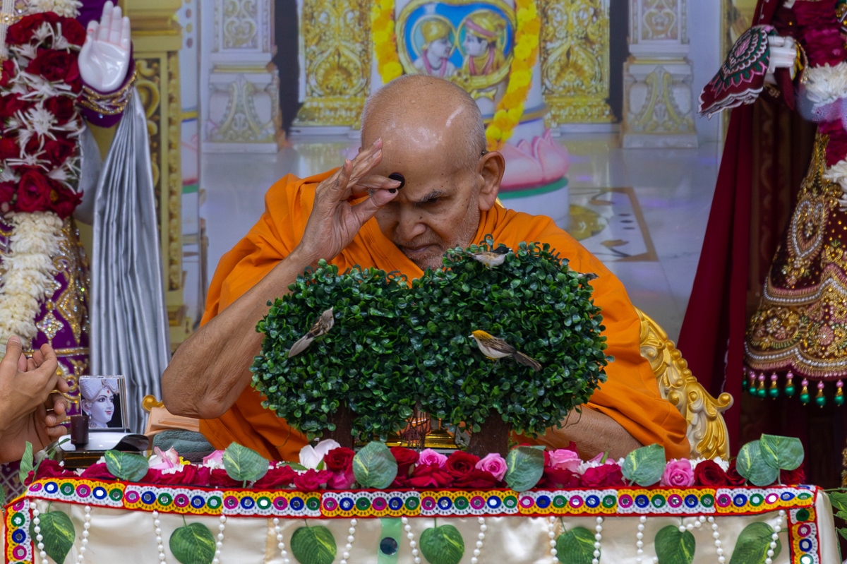 Swamishri offers thal to Brahmaswarup Pramukh Swami Maharaj