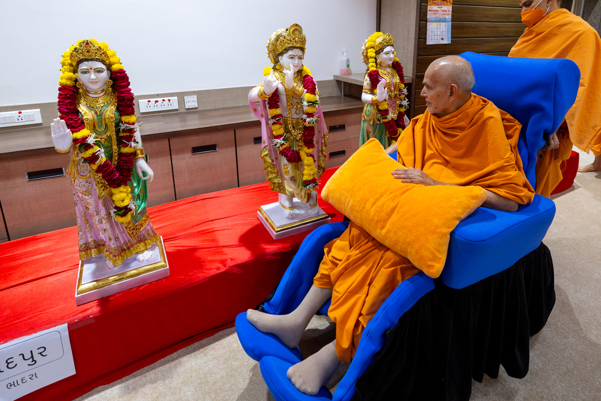 Murtis to be consecrated at BAPS Shri Swaminarayan Mandirs in Thoriyali, Latipar and Nandpur (Bhadra), India