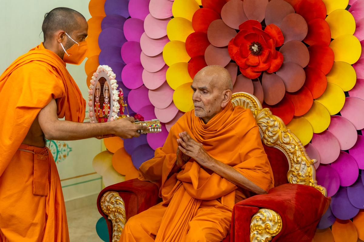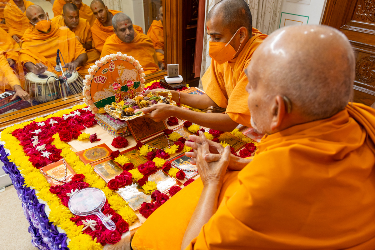Swamis doing Swamishri's puja darshan