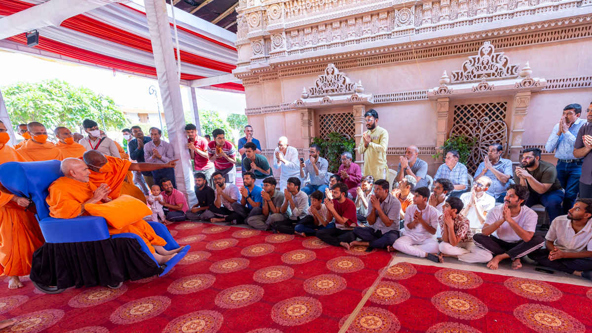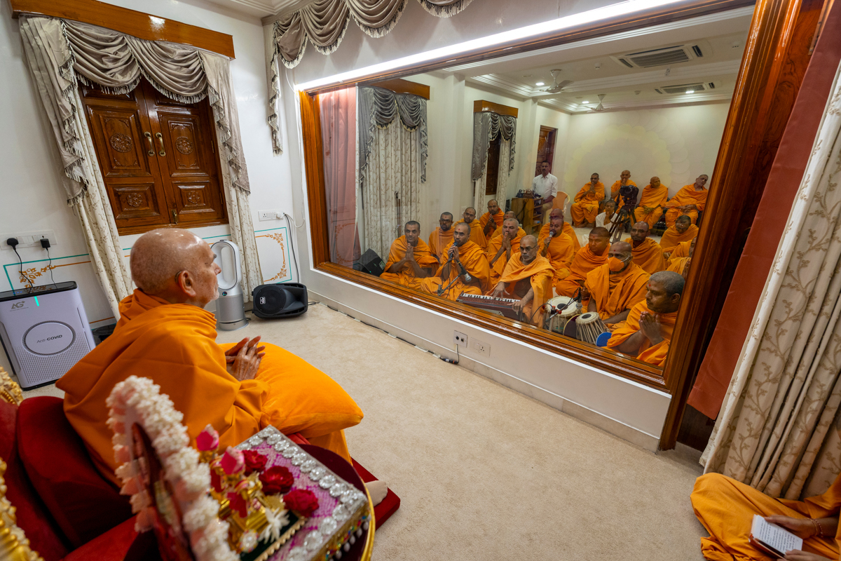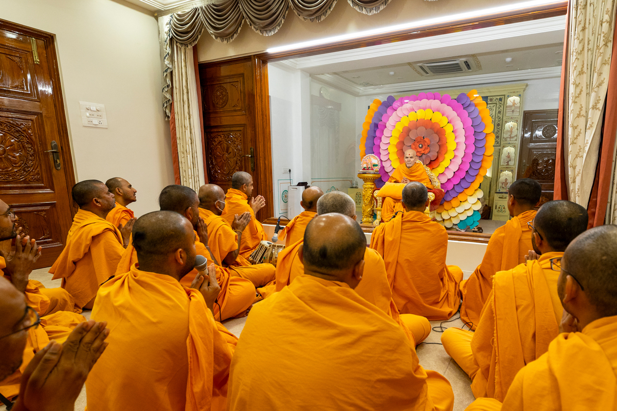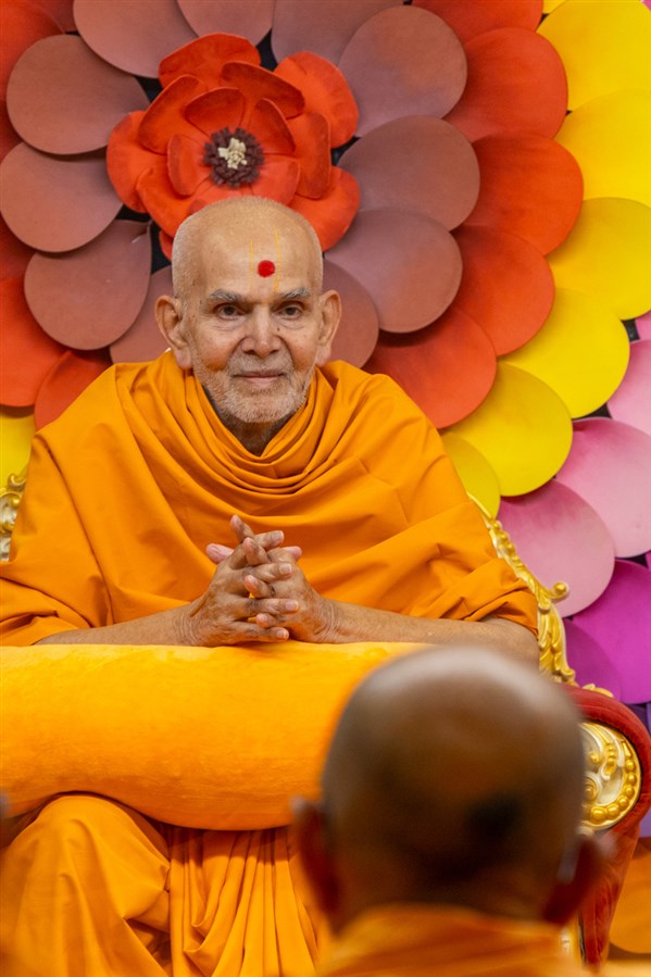 Swamishri blesses the morning assembly