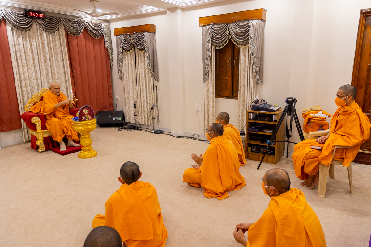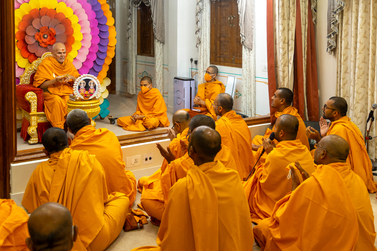Swamishri performs the morning arti
