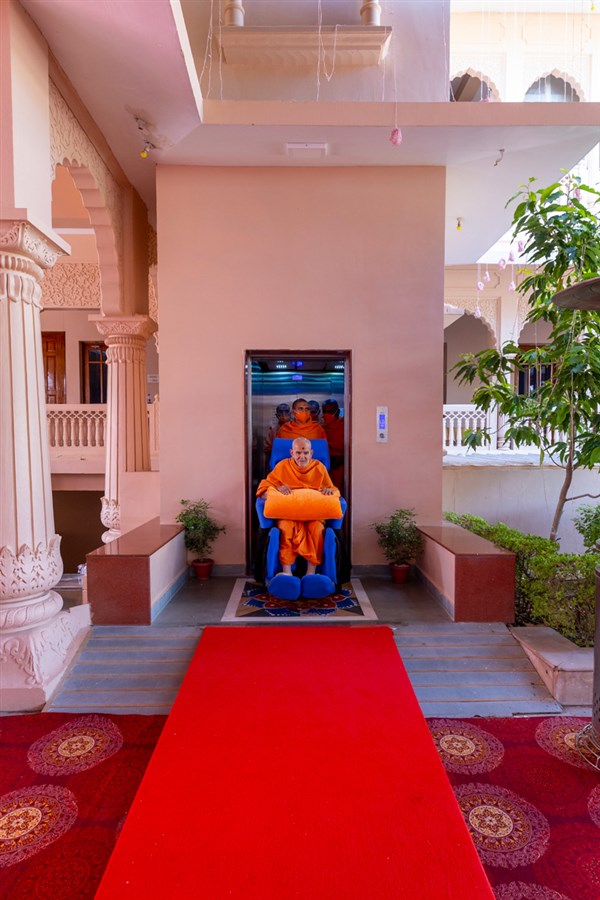 Swamishri on his way for Thakorji's darshan