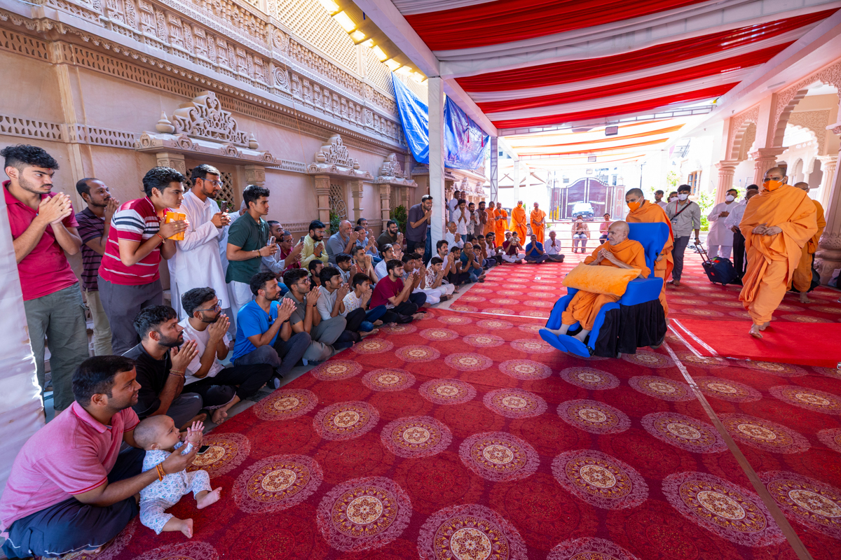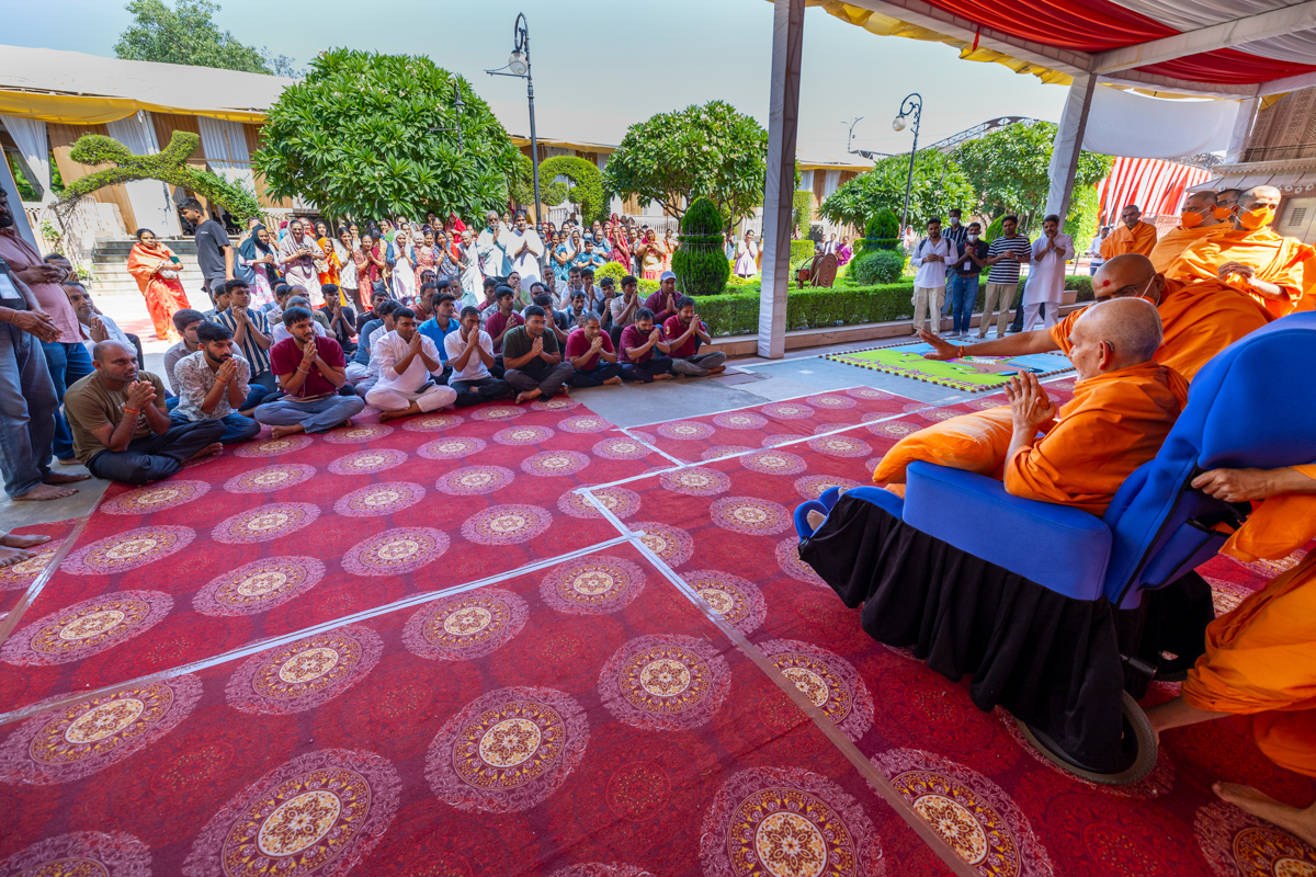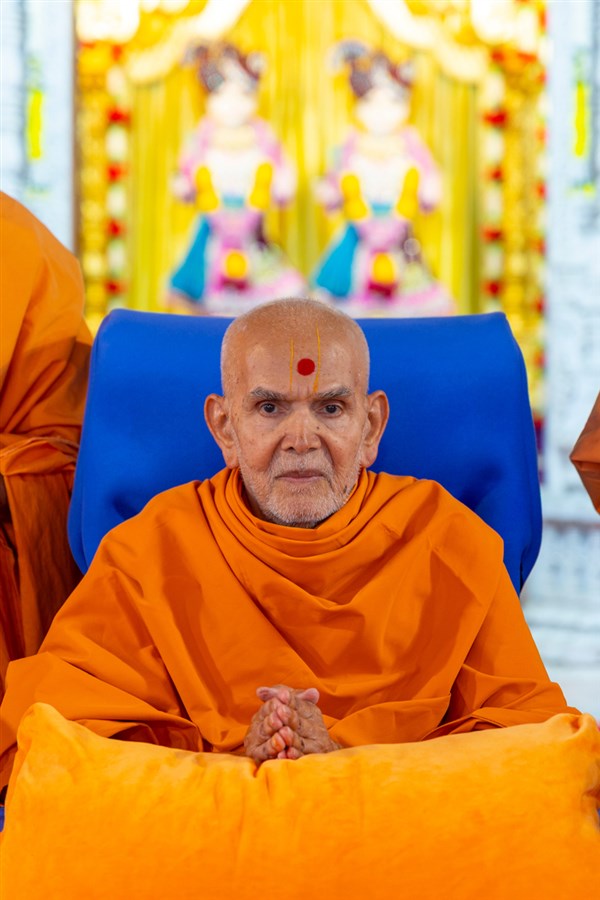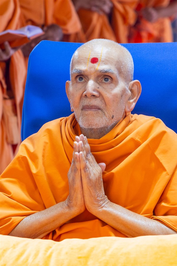Swamishri greets all with folded hands