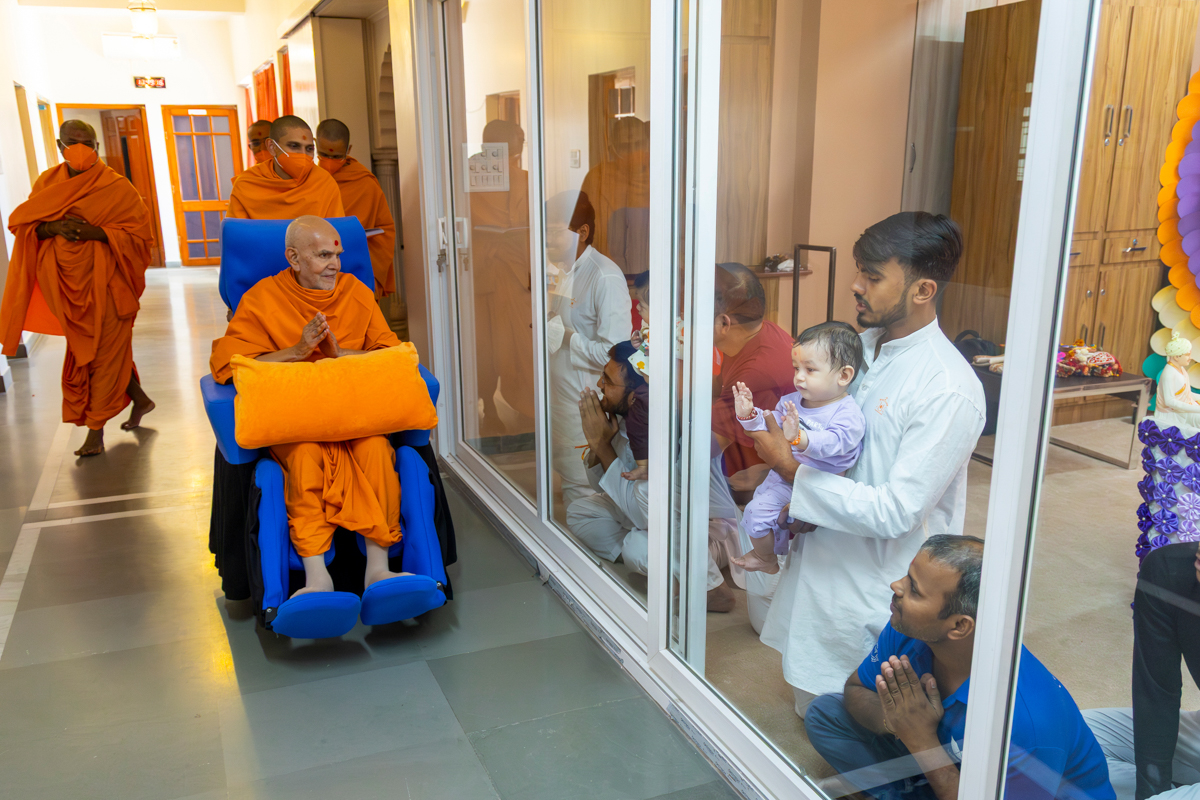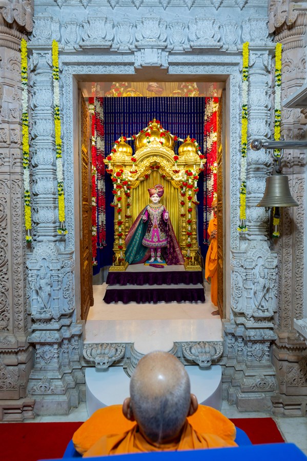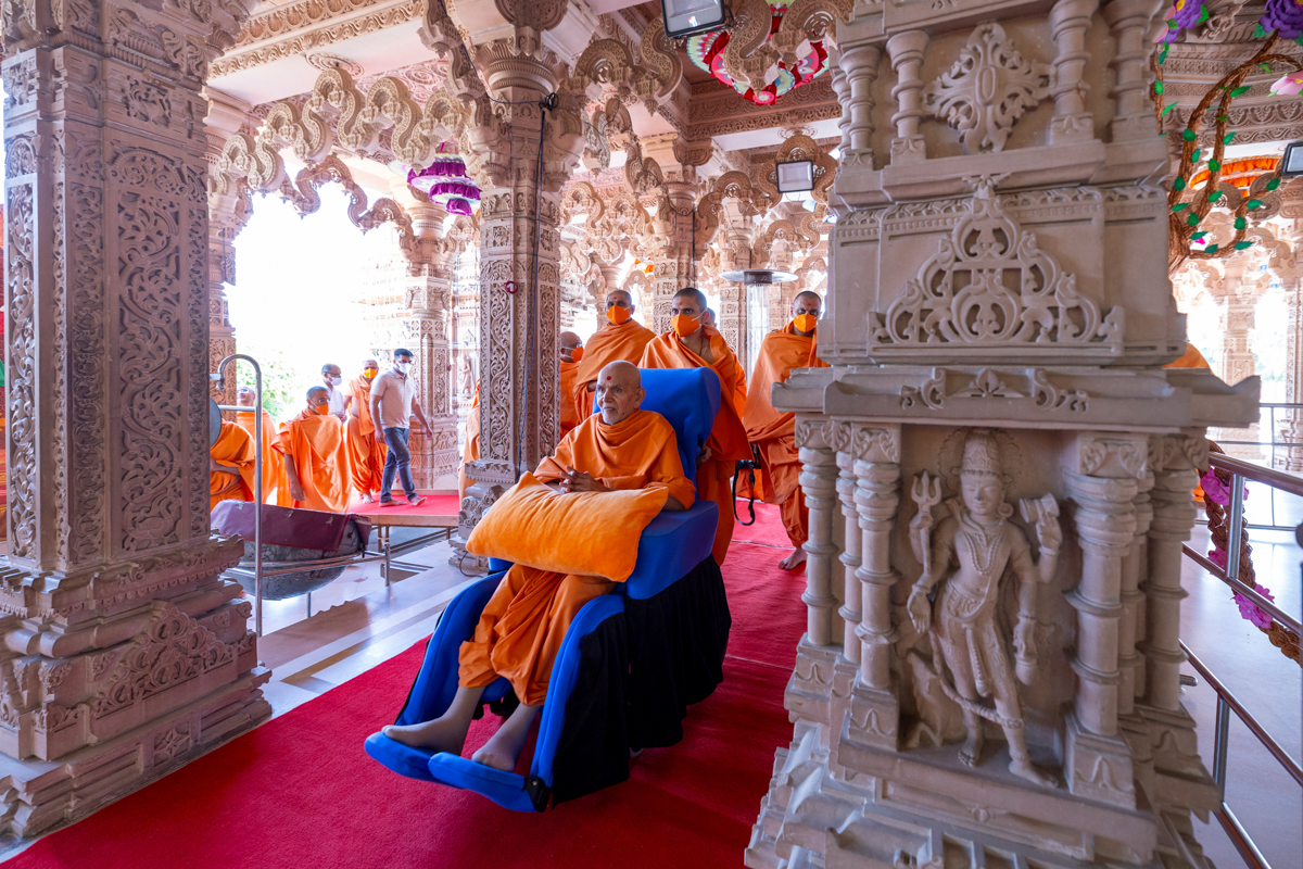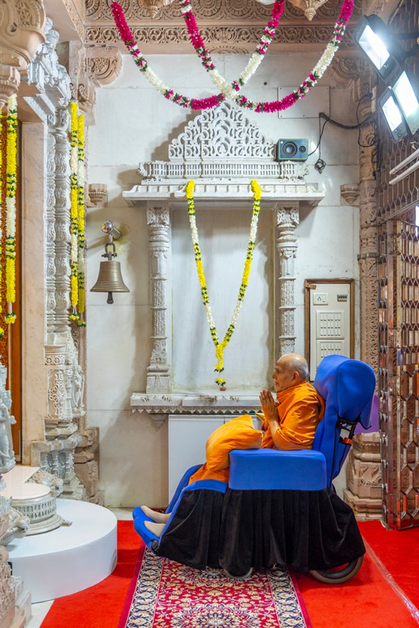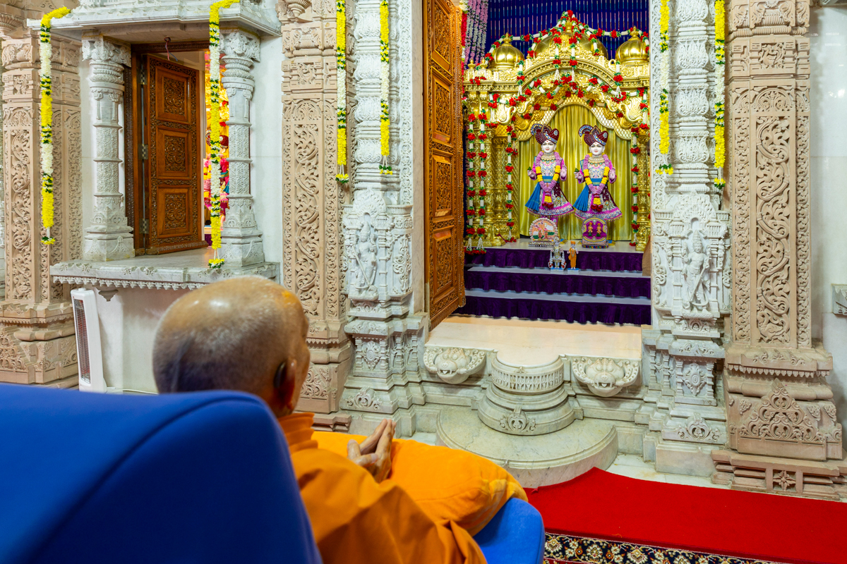 Swamishri arrives for Thakorji's darshan