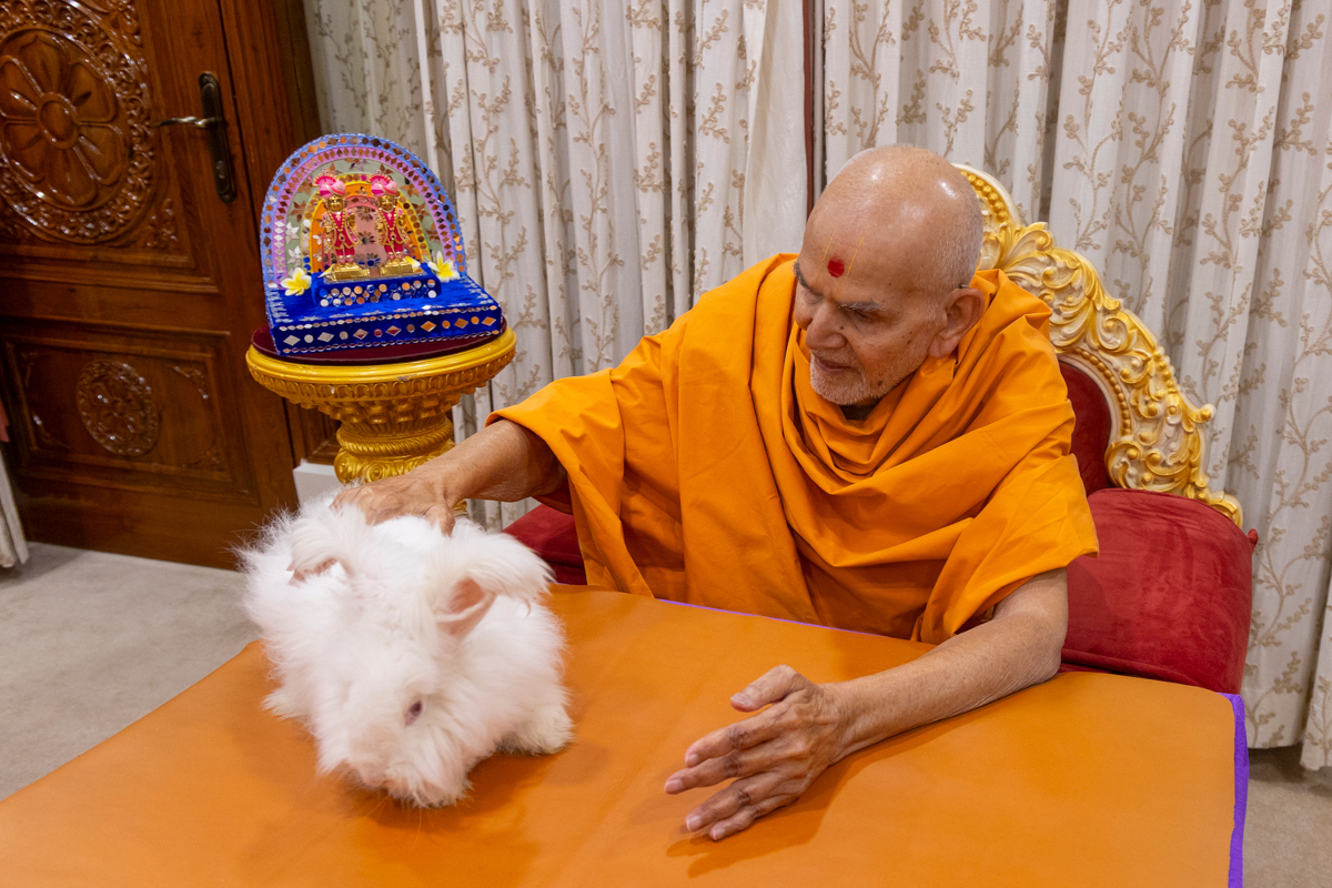 Swamishri blesses a rabbit