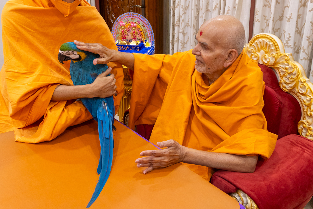 Swamishri blesses a bird