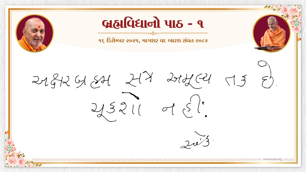 Aksharbrahma Satra Amulya Tak Chhe. Chuksho Nahi.