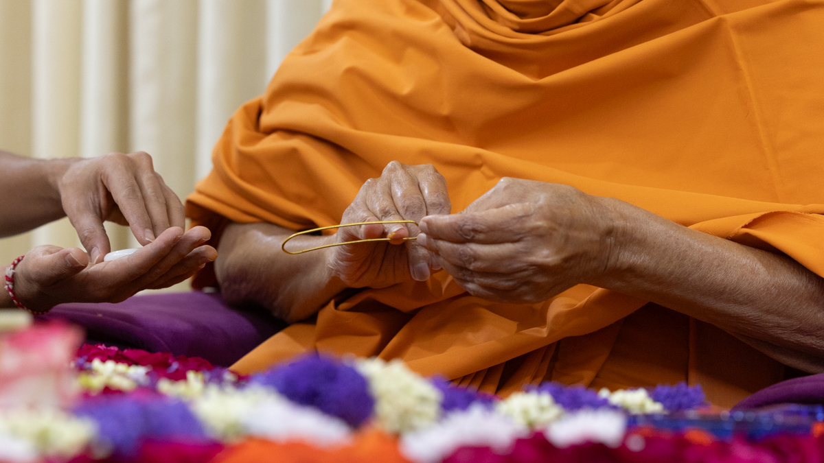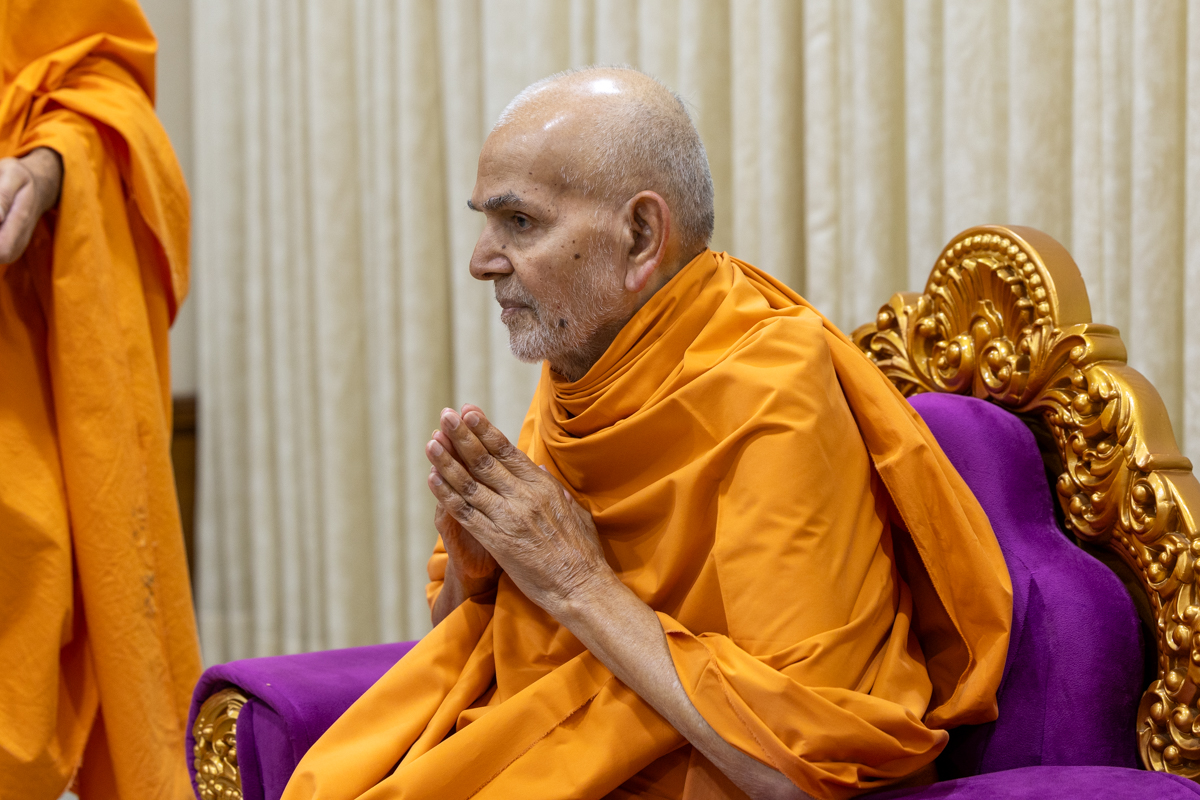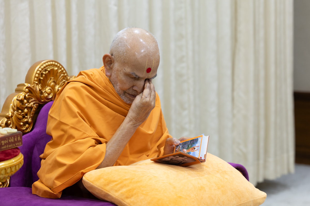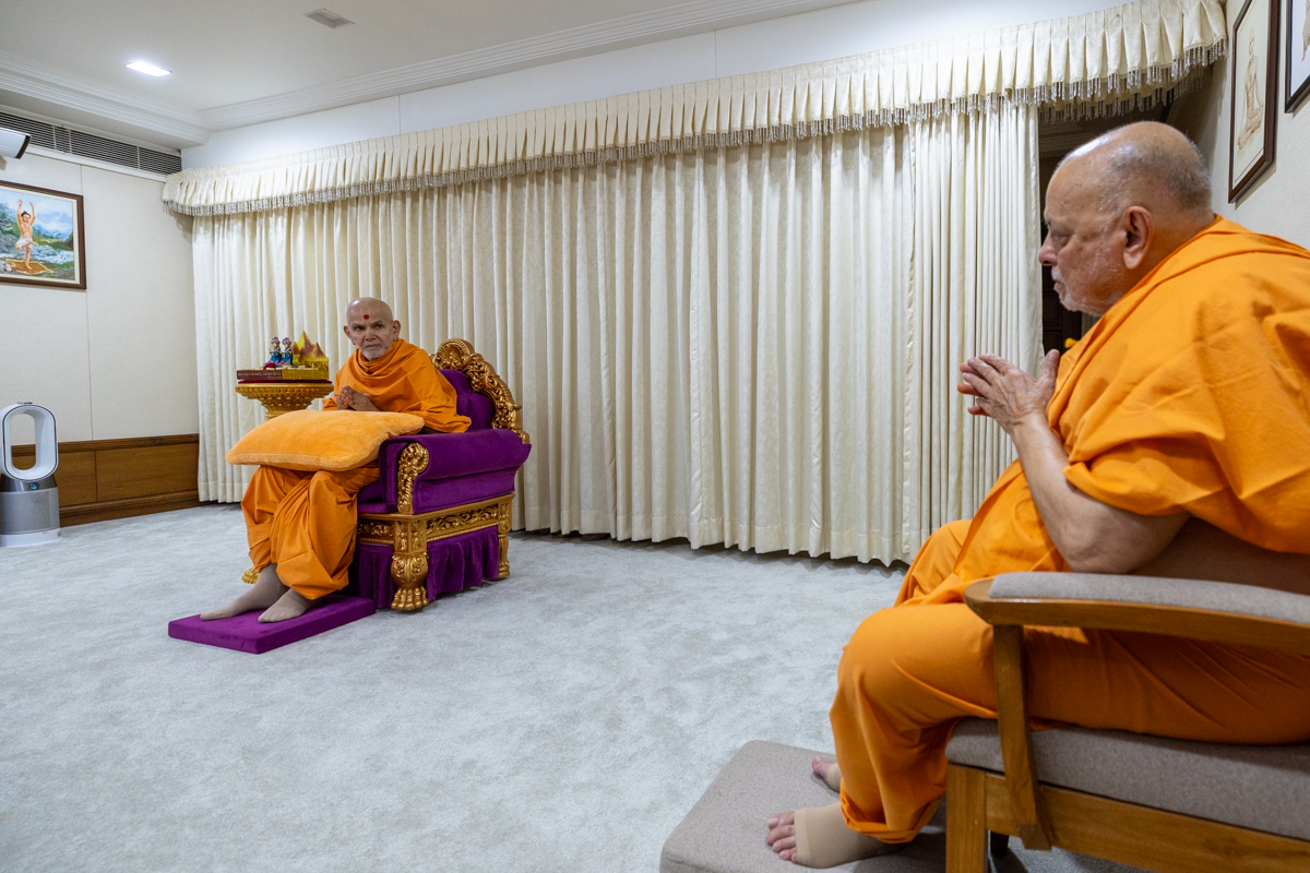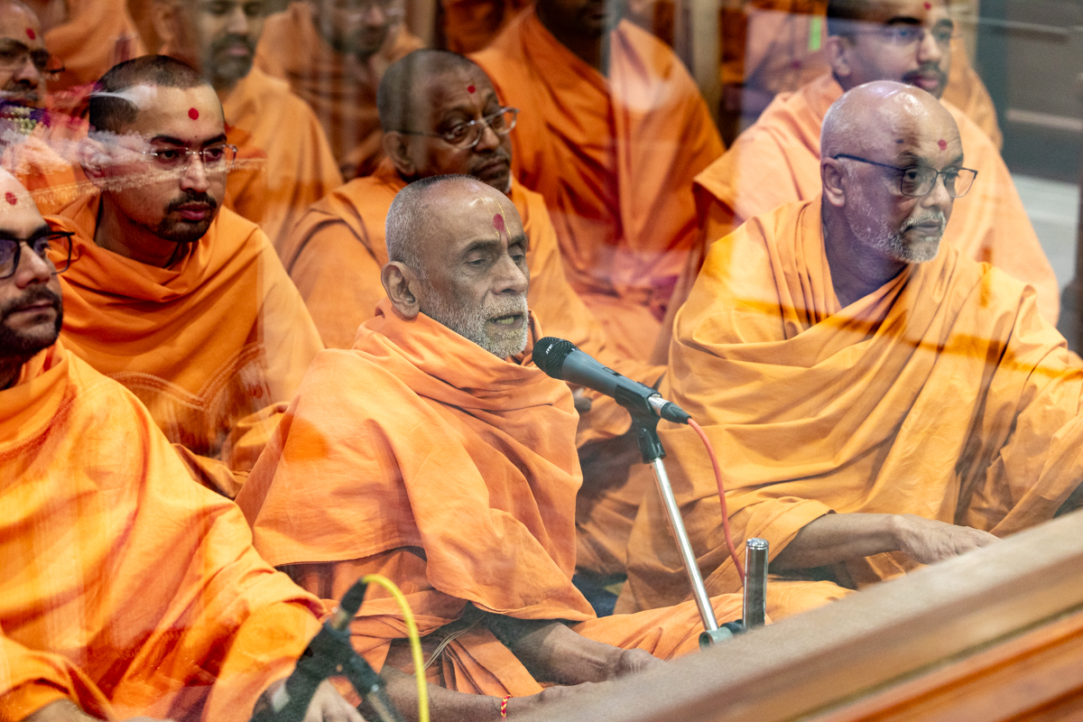 Pujya Ishwarcharan Swami doing darshan of Swamishri