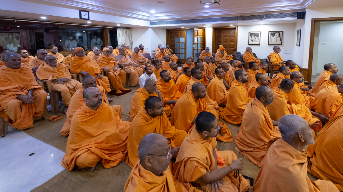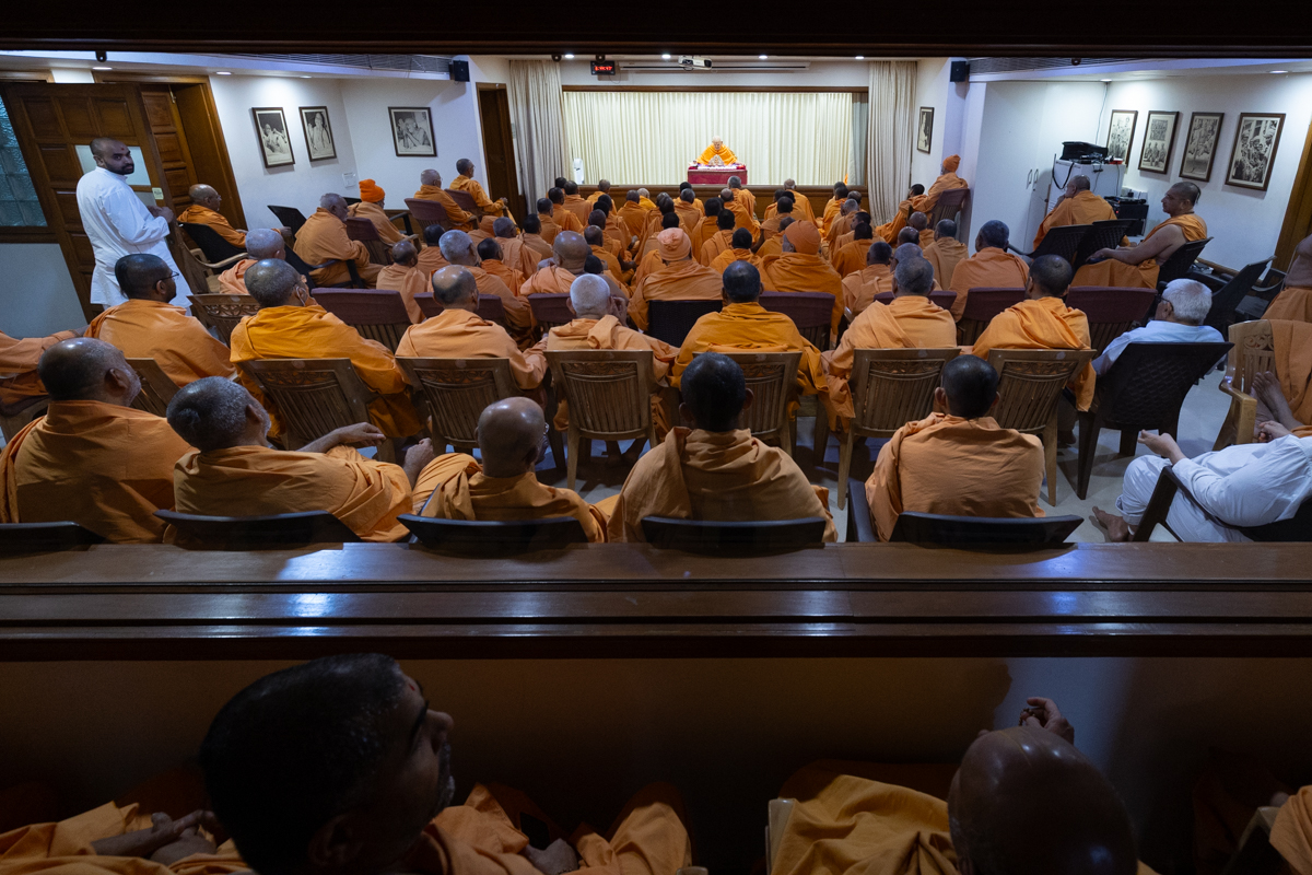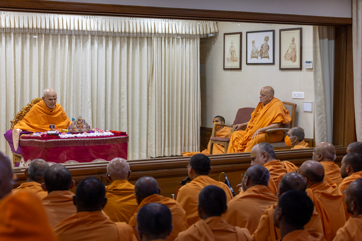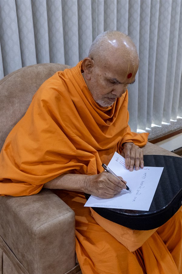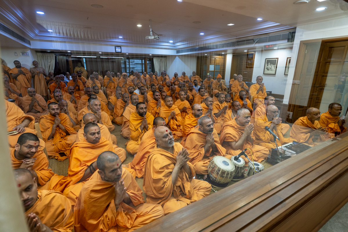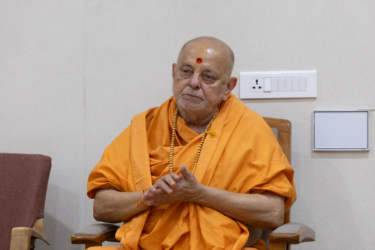 Pujya Ishwarcharan Swami doing darshan of Swamishri