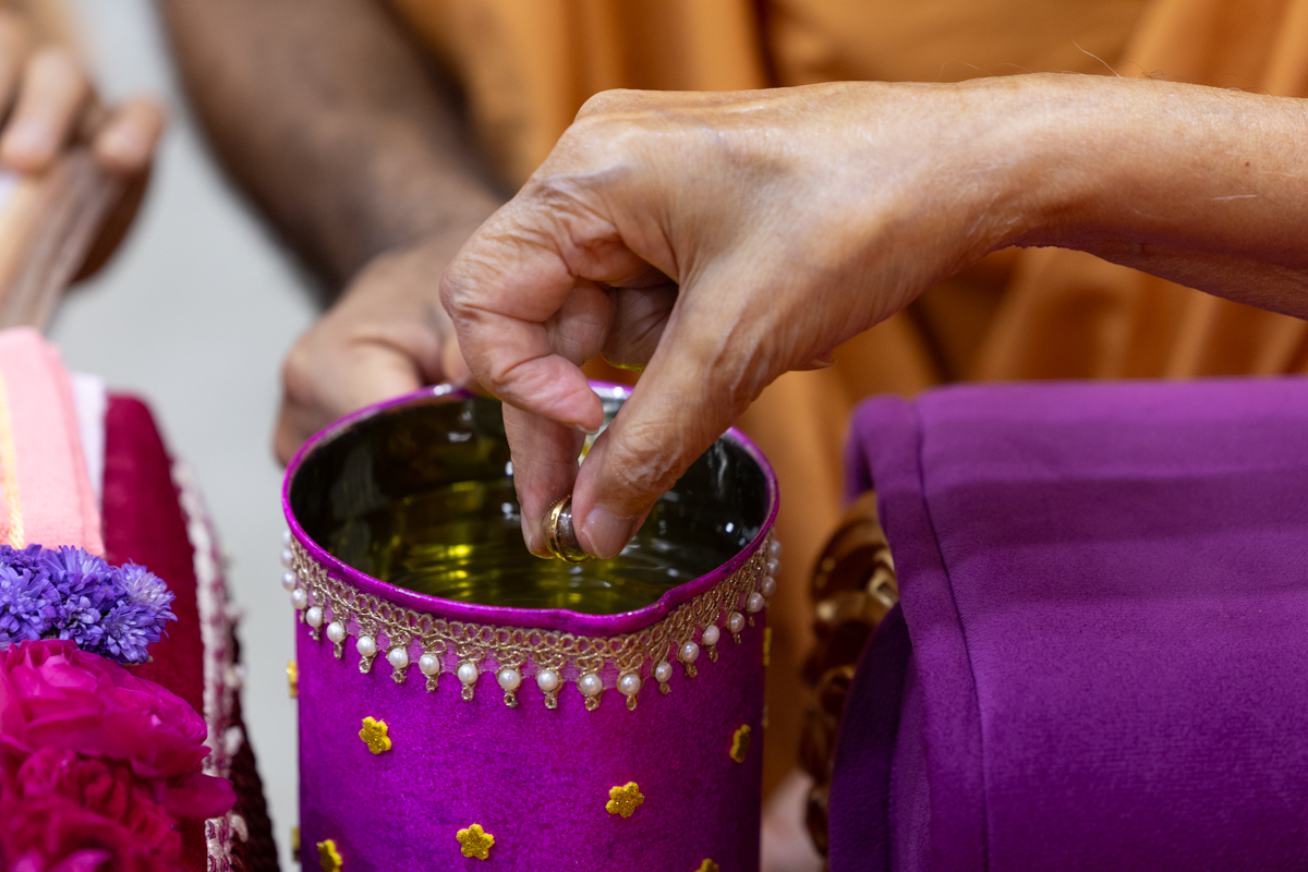 Swamishri sanctifies water with the holy relics of Bhagwan Swaminarayan and the Guru Parampara