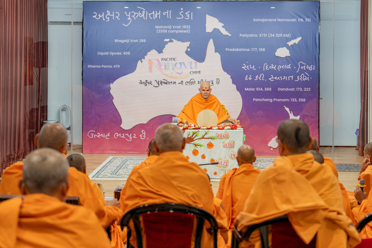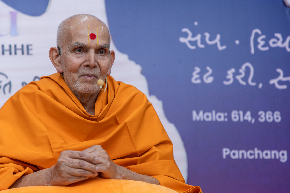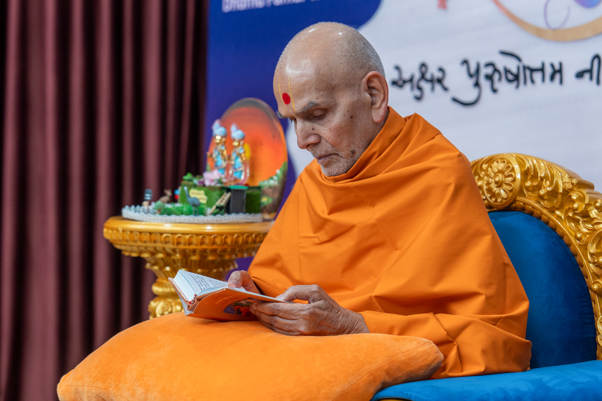 Swamishri observes a banner