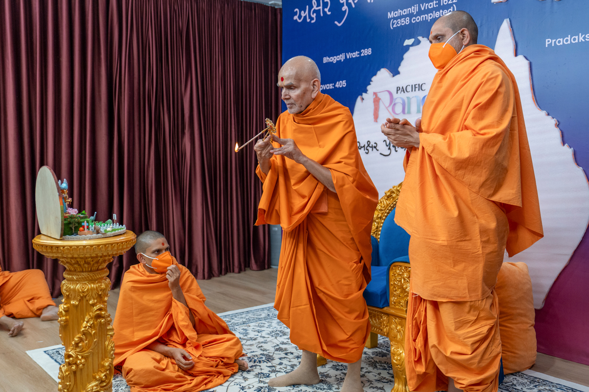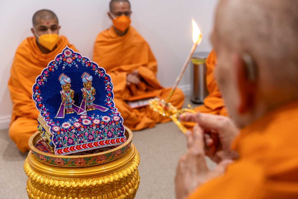 Swamishri performs the morning arti