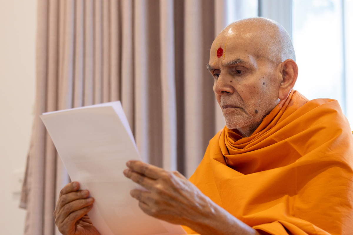 Swamishri reads letters from devotees