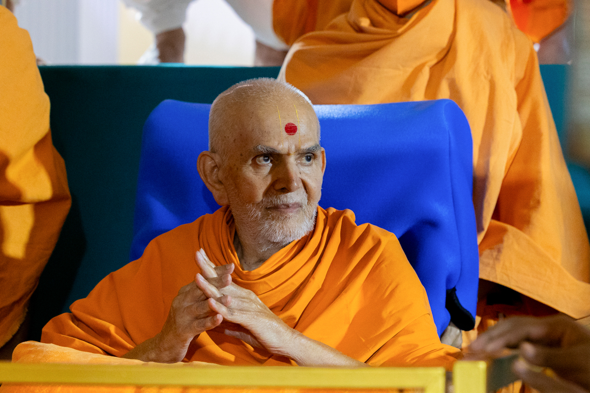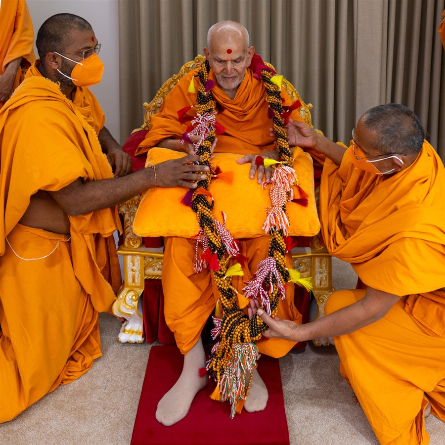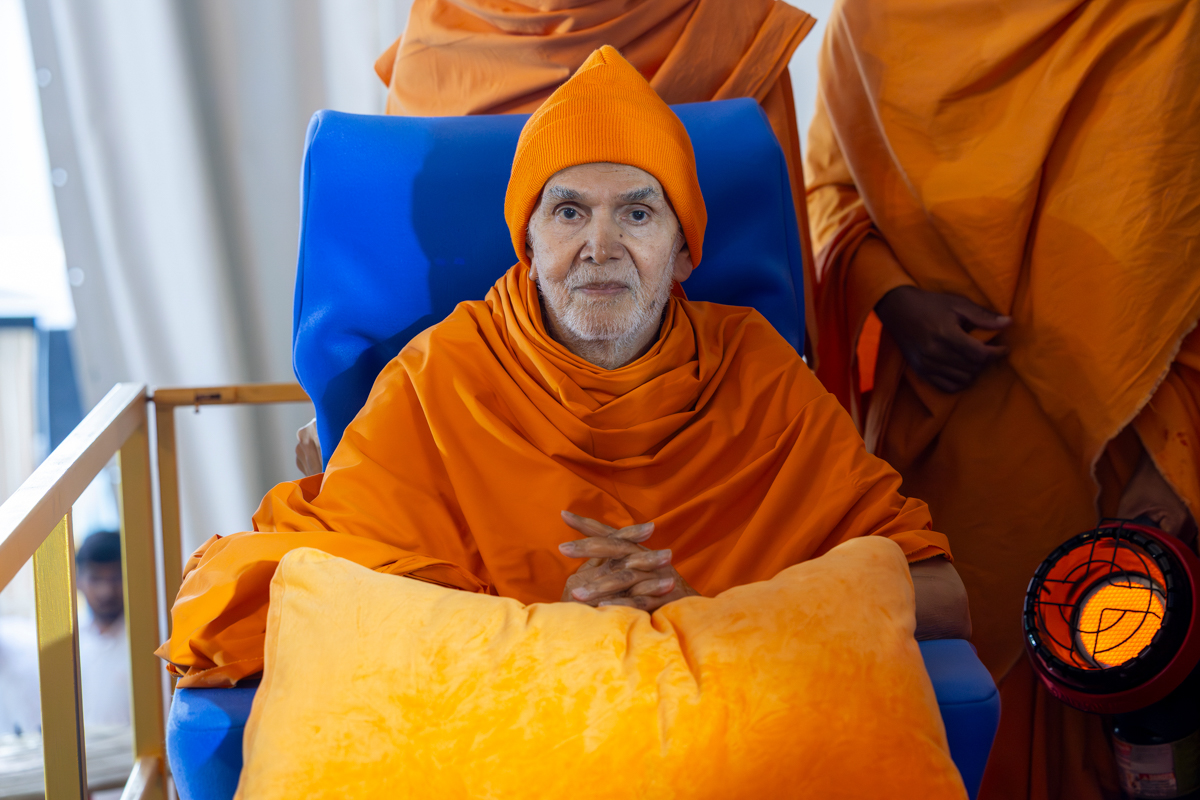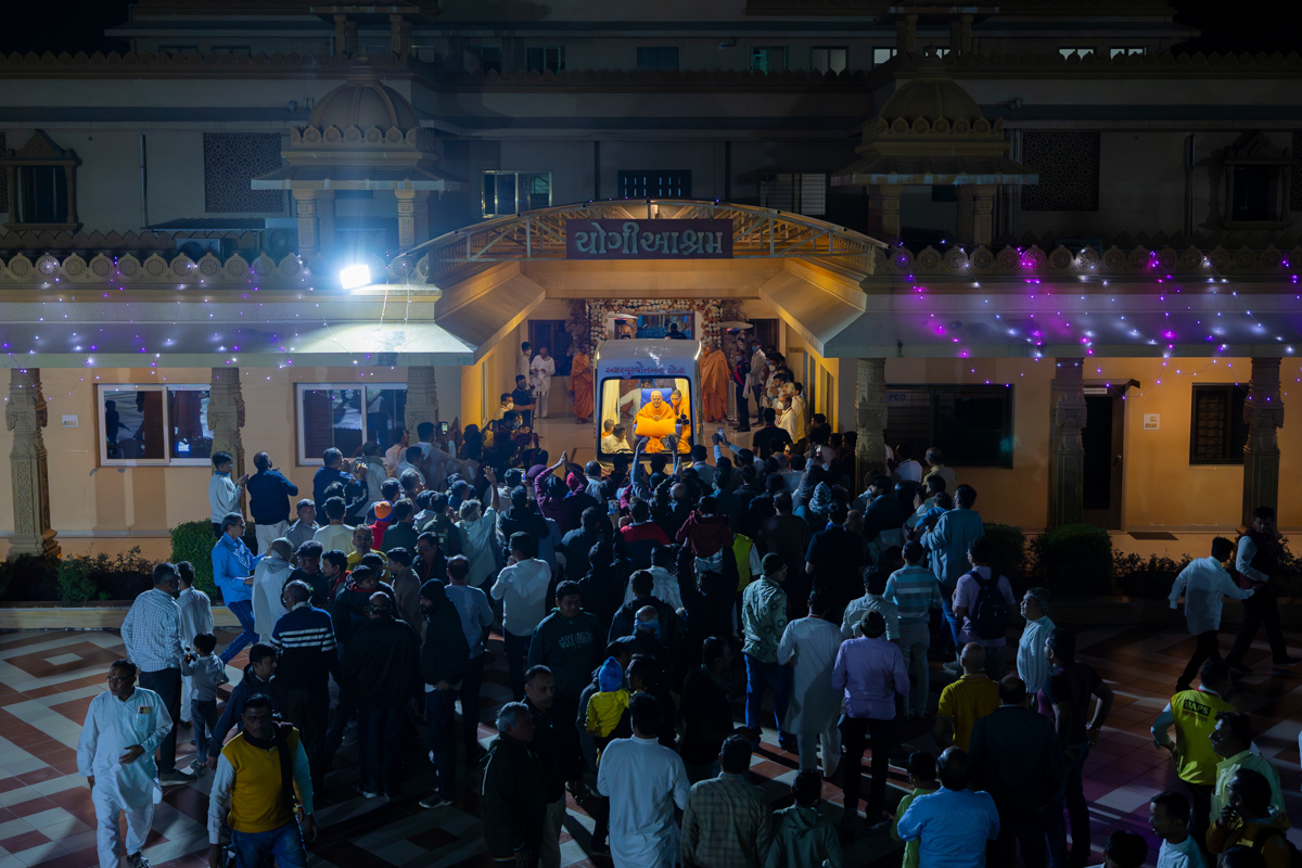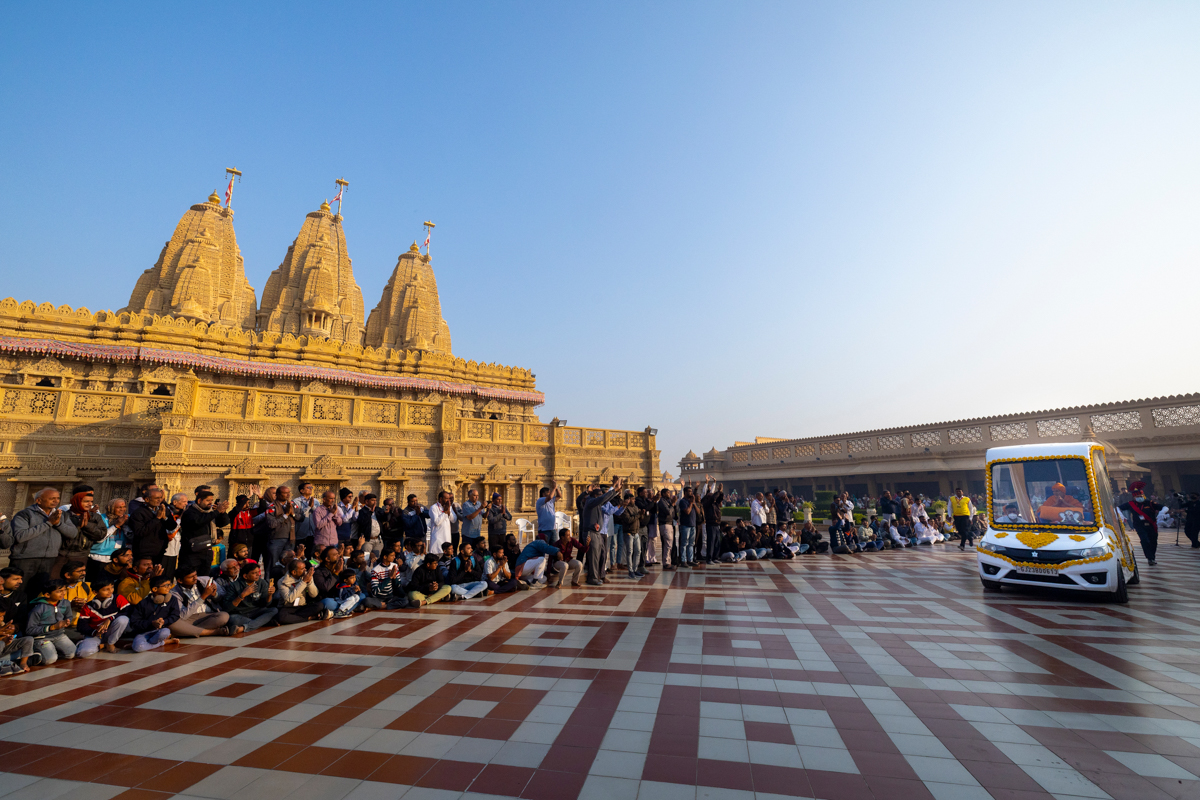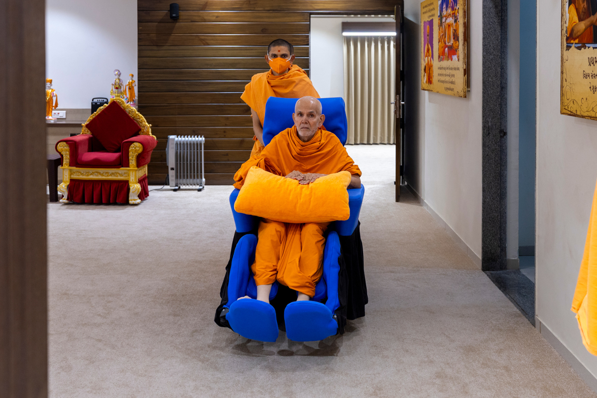 Param Pujya Mahant Swami Maharaj on his way to perform his daily puja