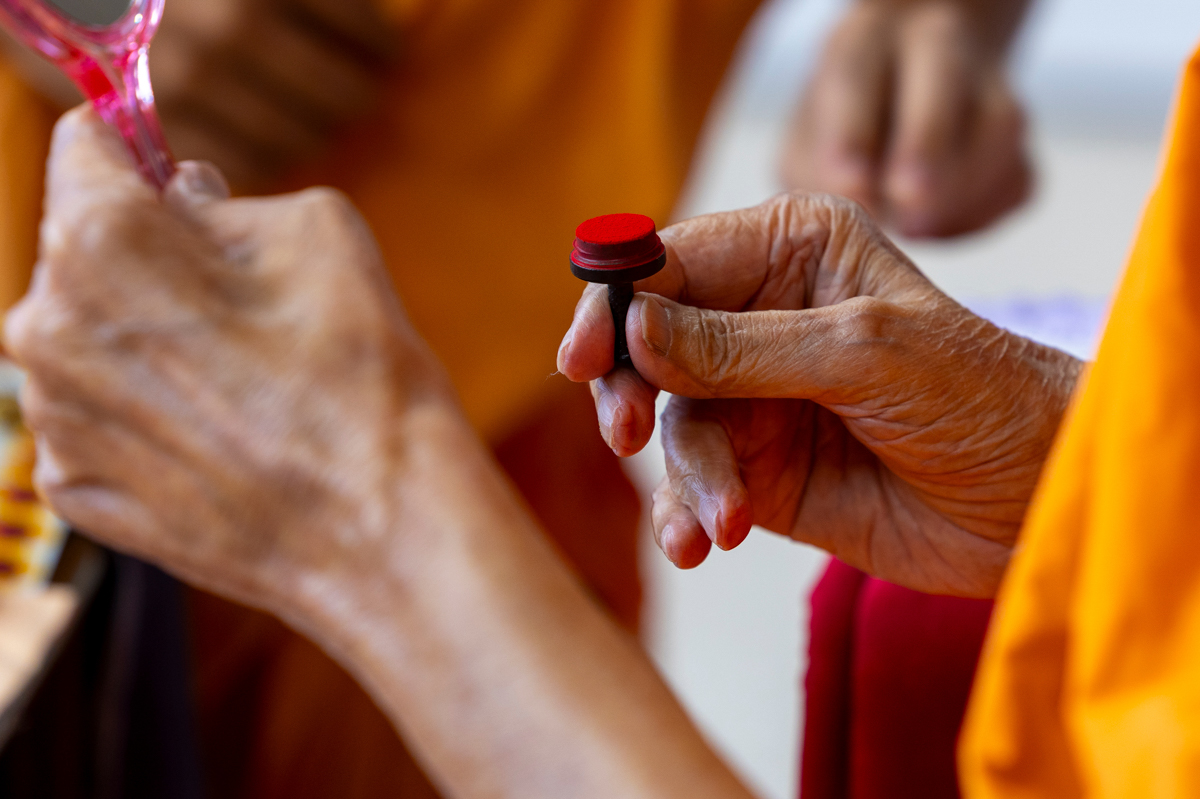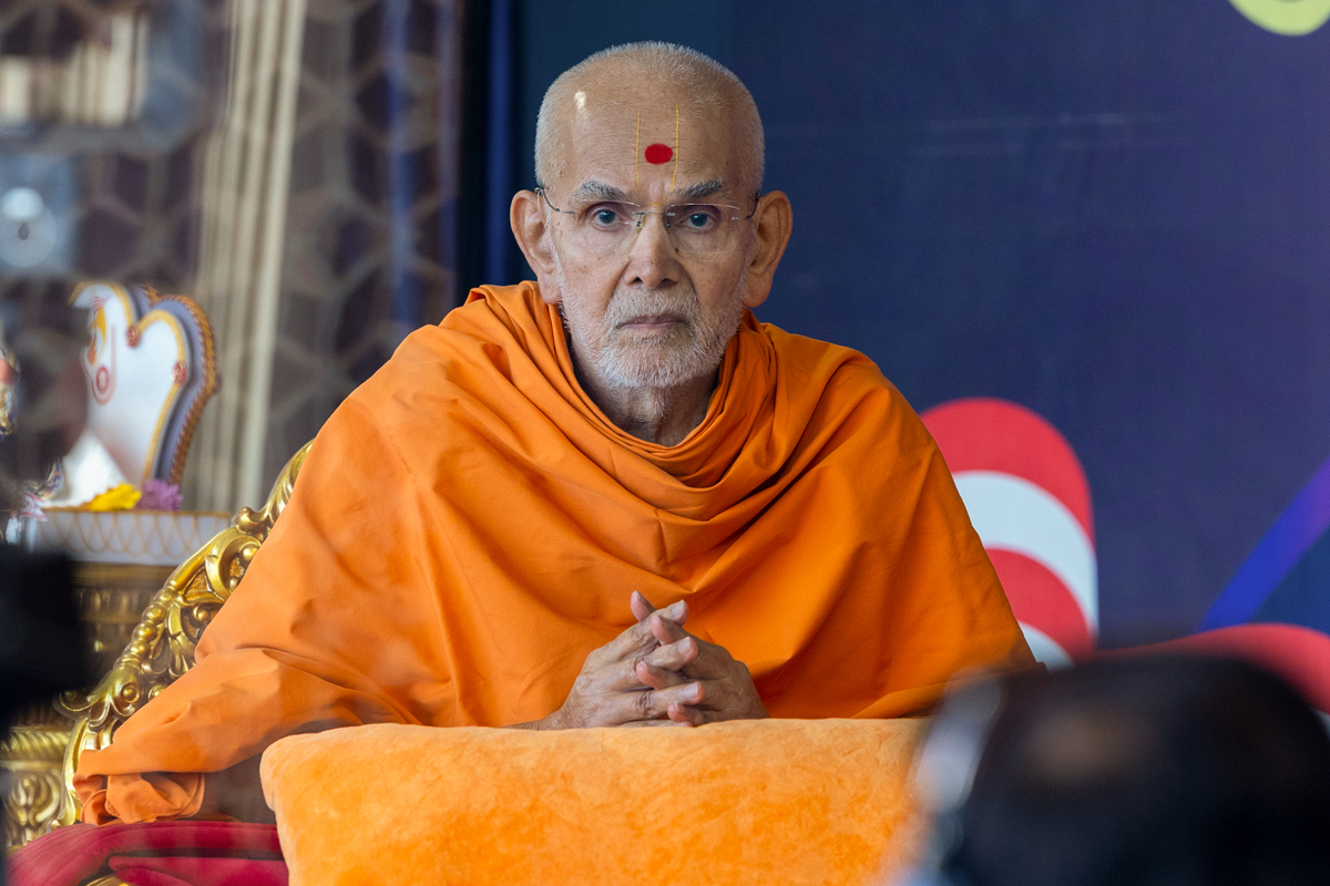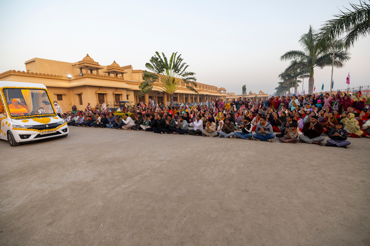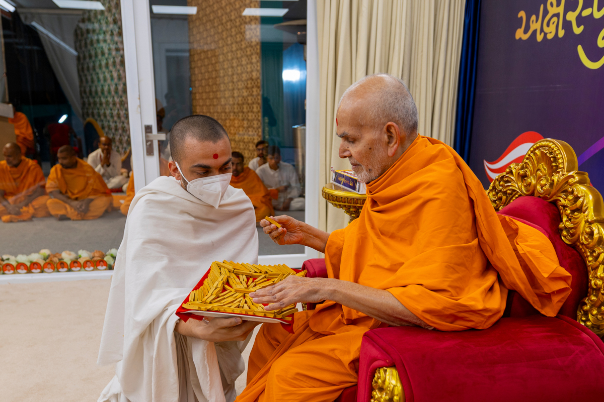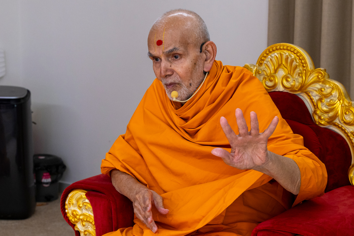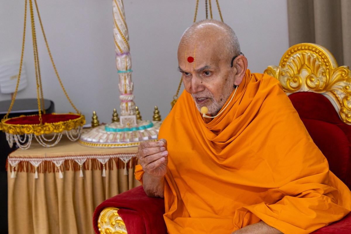 Param Pujya Mahant Swami Maharaj on his way to perform his daily puja