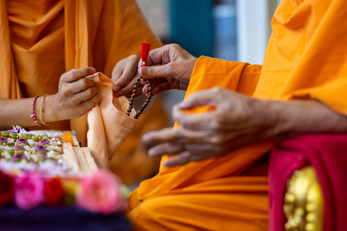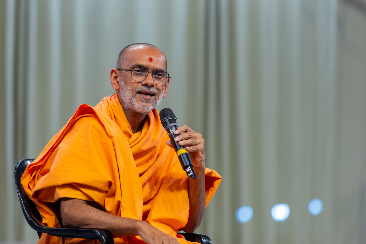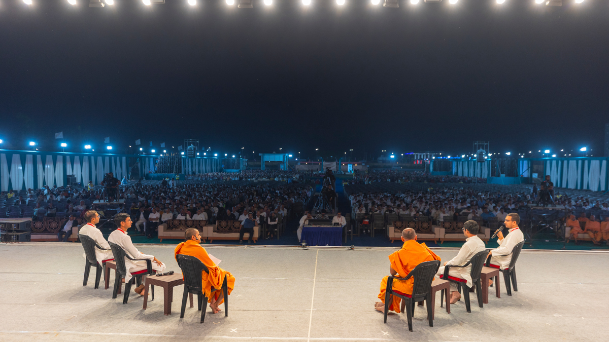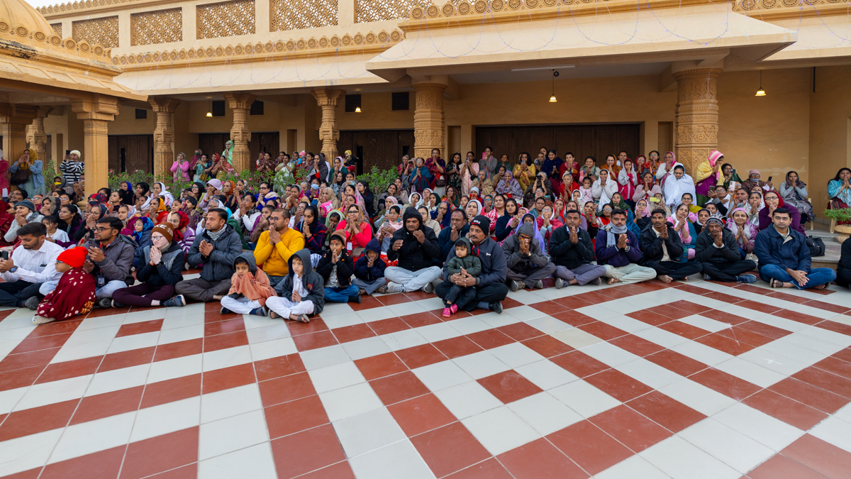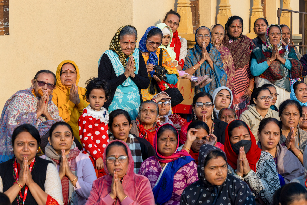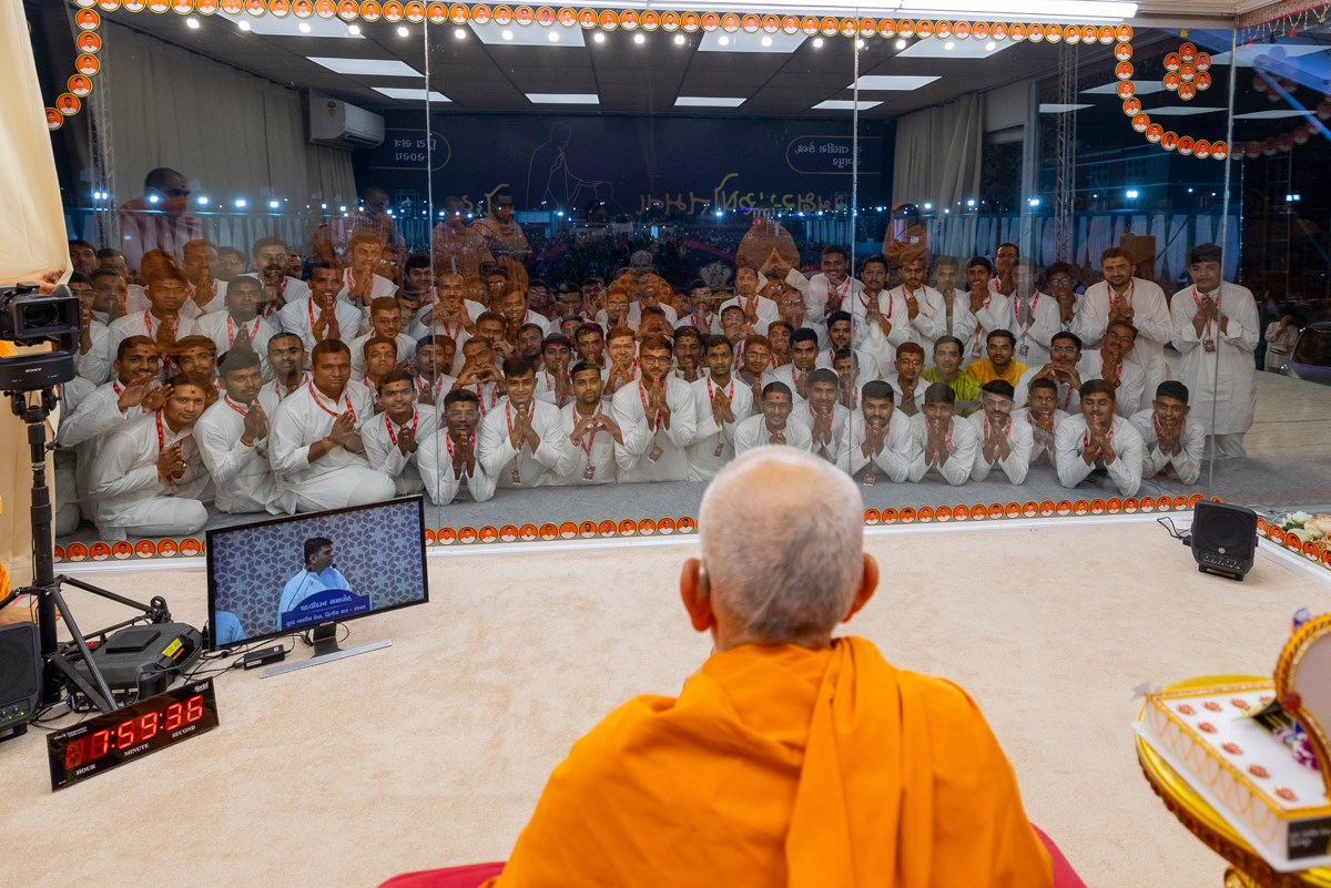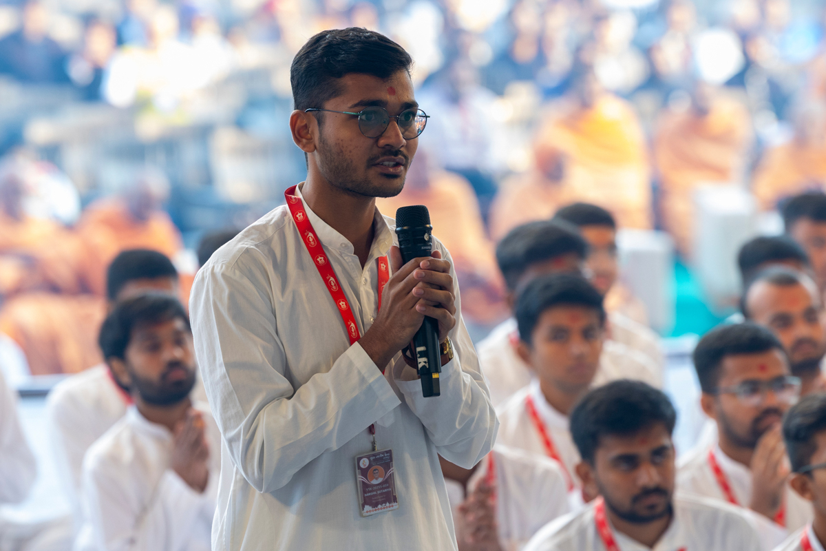 Yuvaks lead everyone in reciting the sadhana mantra and daily prayer in Swamishri's puja
