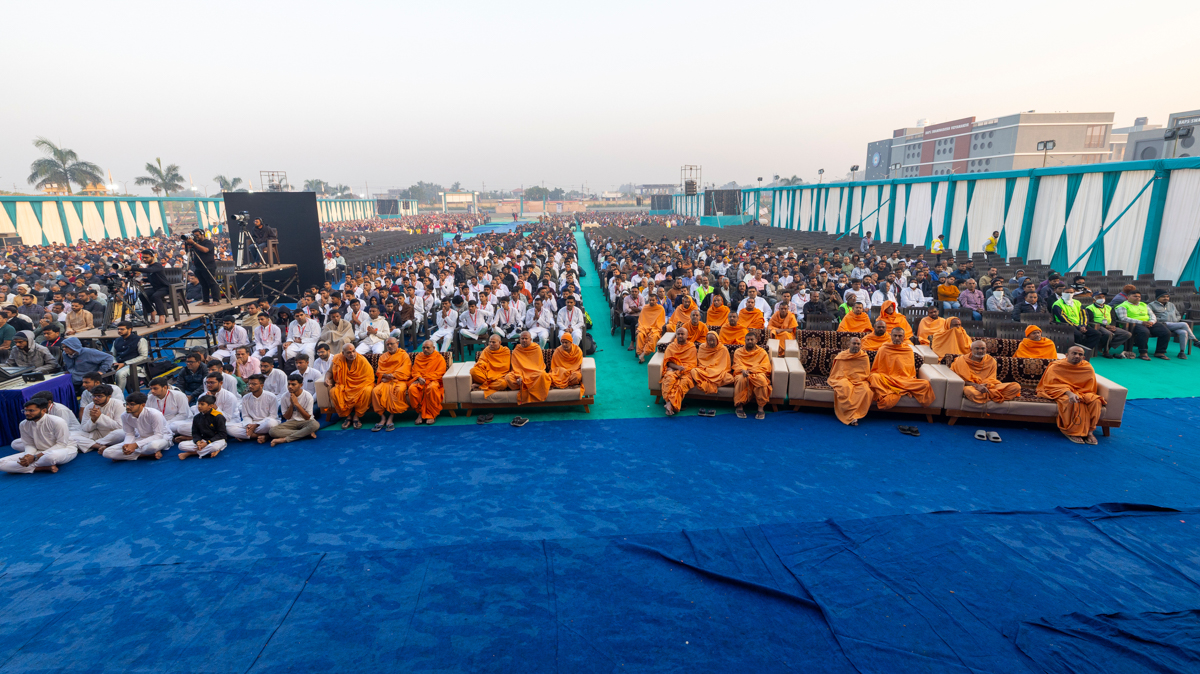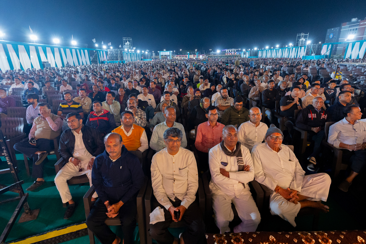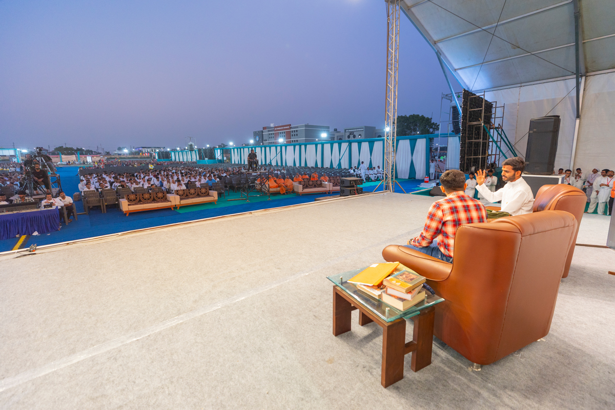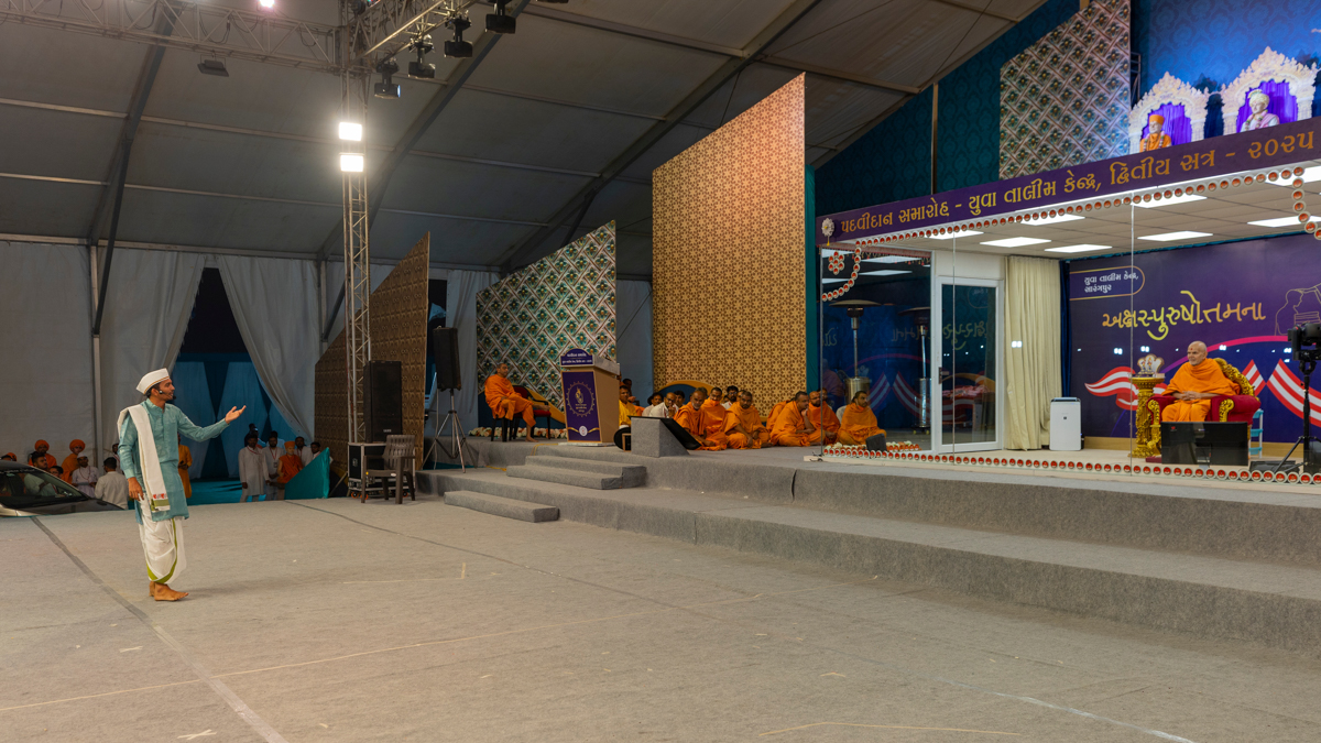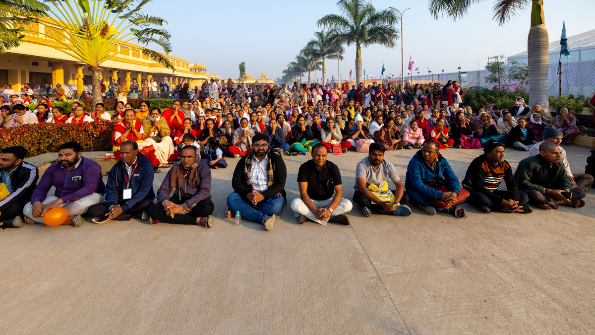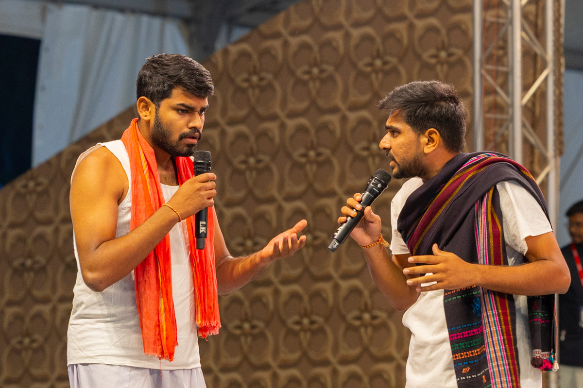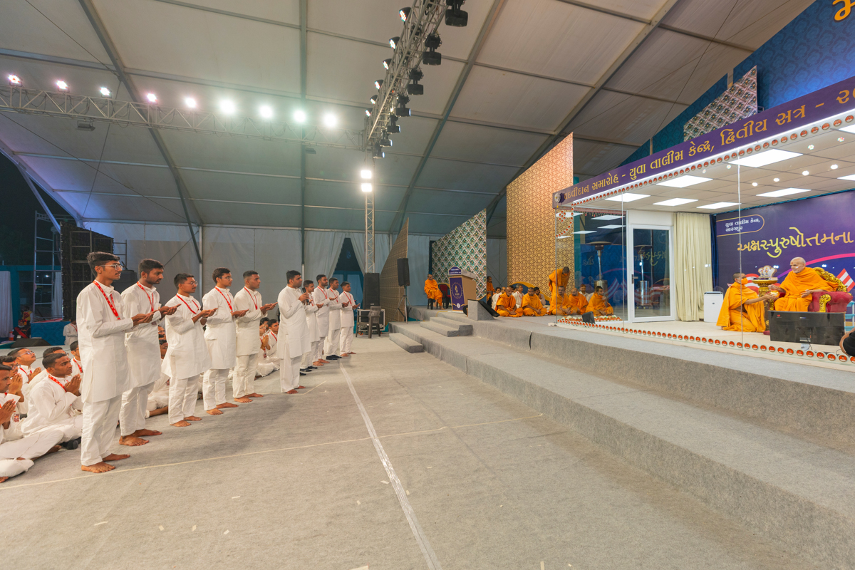 YTK yuvaks sing kirtans at the beginning of the evening Yuva Talim Kendra convocation assembly
