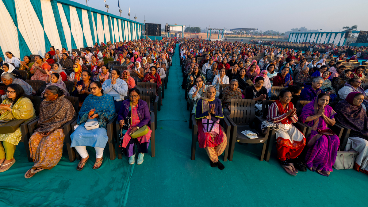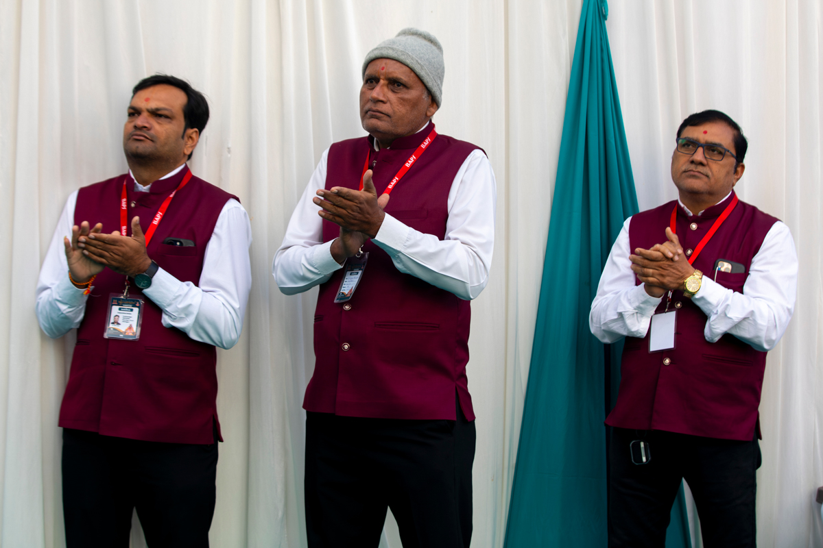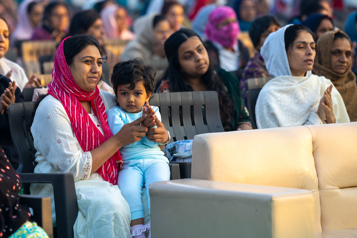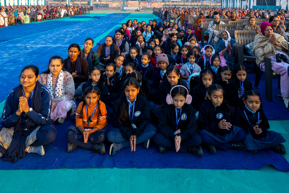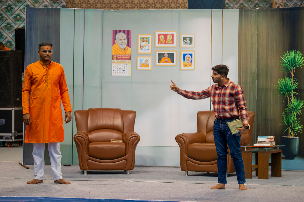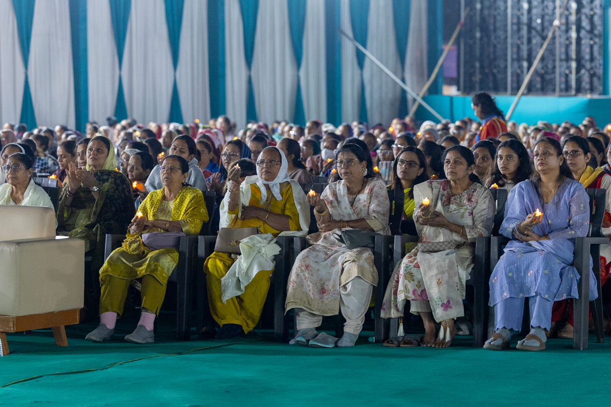 YTK yuvaks sing kirtans at the beginning of the evening Yuva Talim Kendra convocation assembly