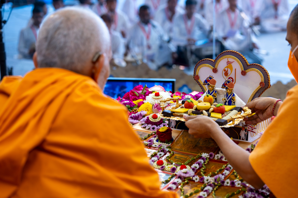 Thal is offered to Shri Harikrishna Maharaj and Shri Gunatitanand Swami Maharaj
