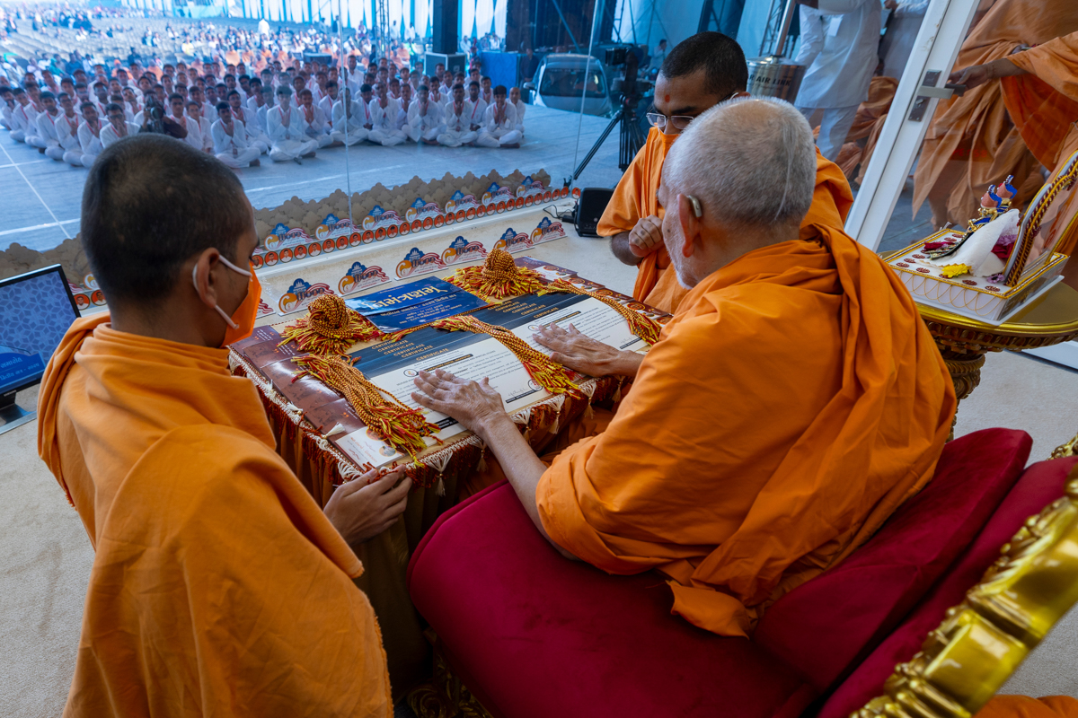 Swamishri reads the Shikshapatri and Satsang Diksha