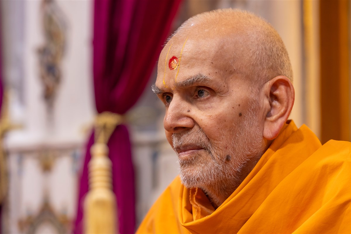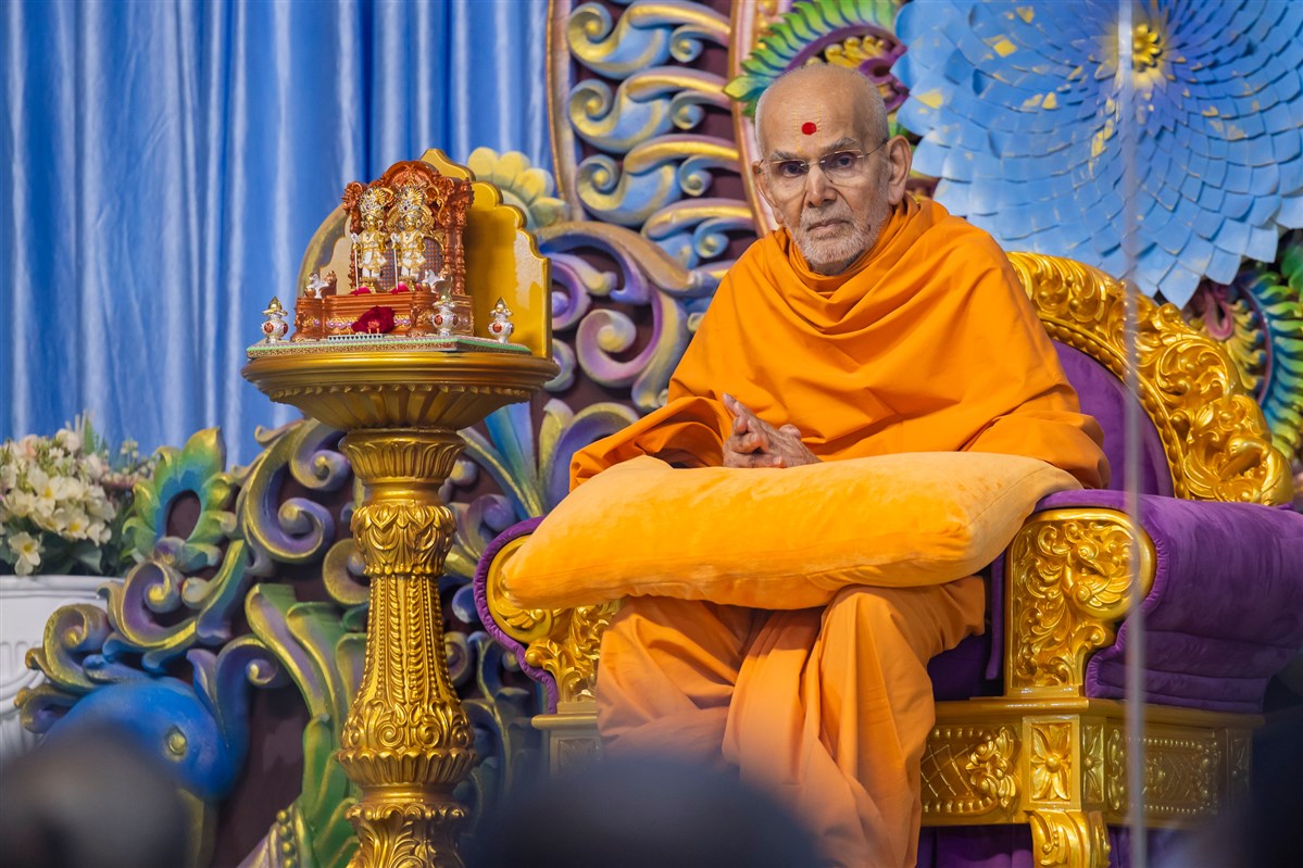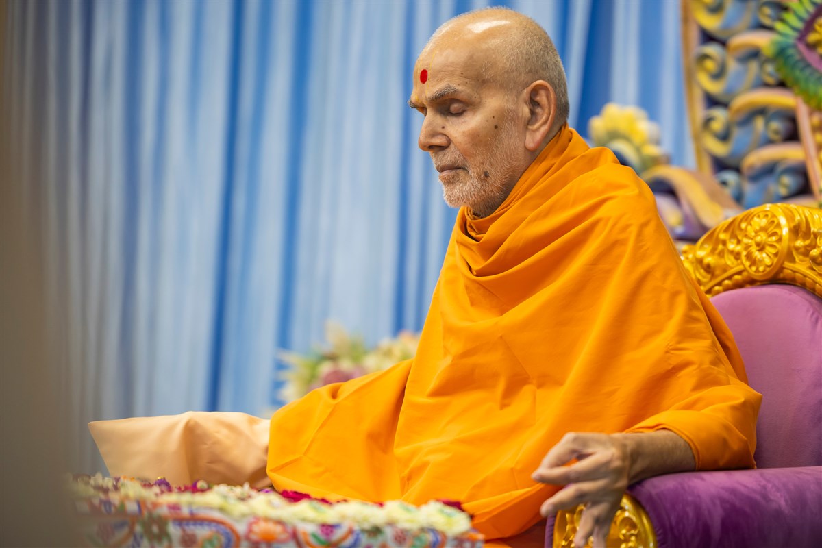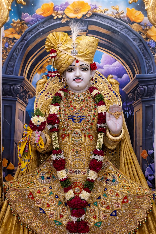 Swamishri engrossed in darshan of Shri Ghanshyam Maharaj