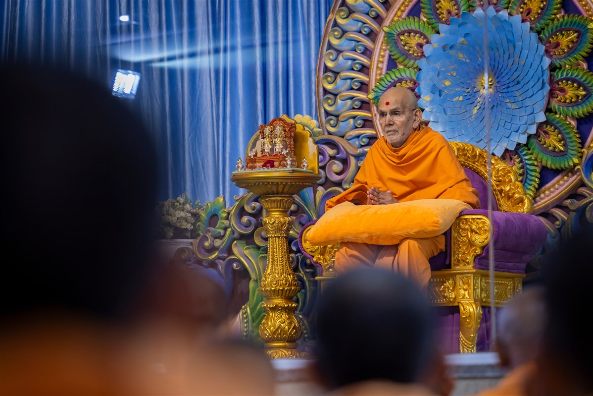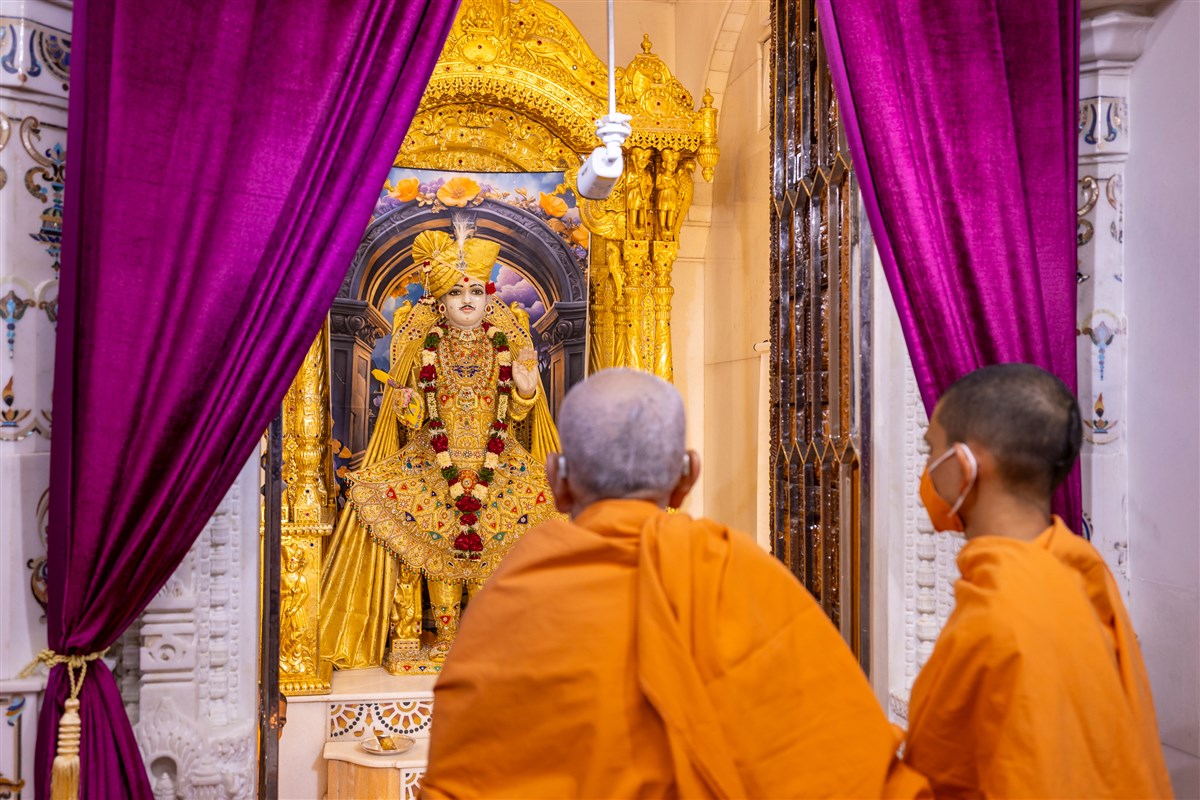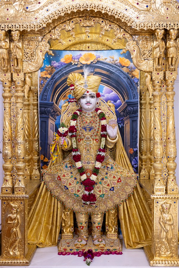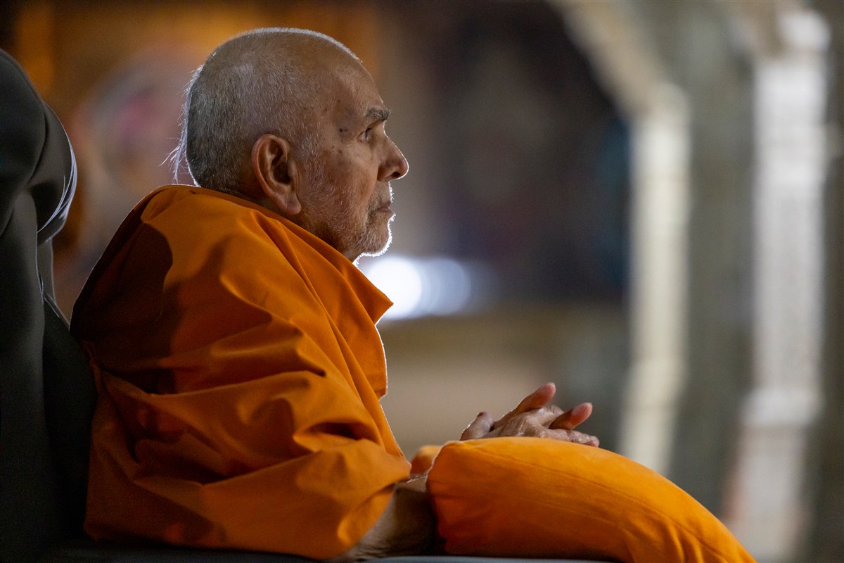 Swamishri engrossed in darshan of Shri Ghanshyam Maharaj