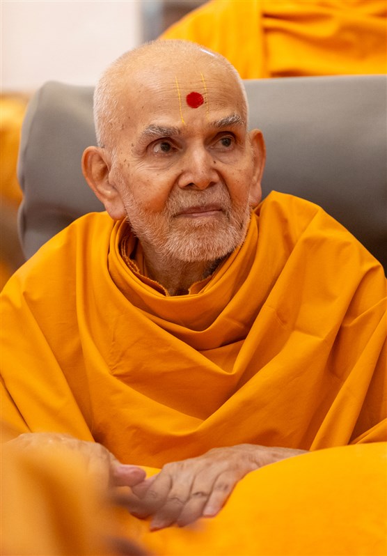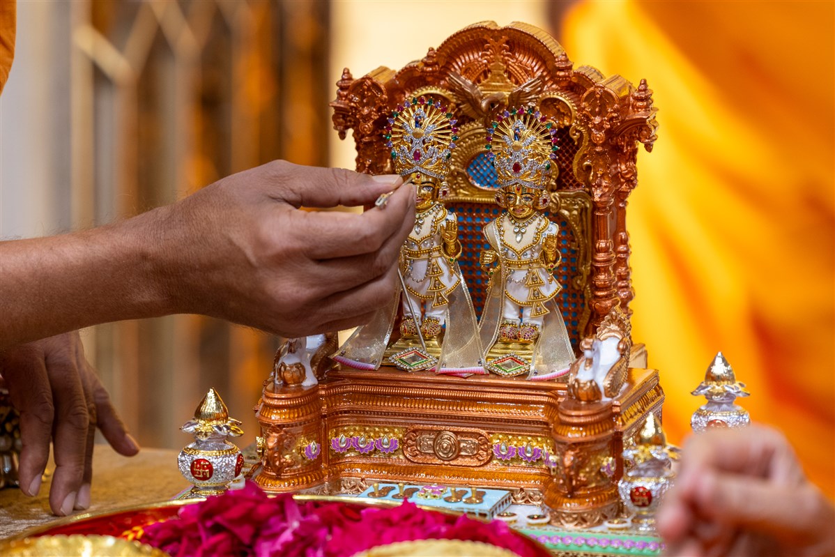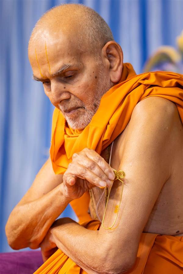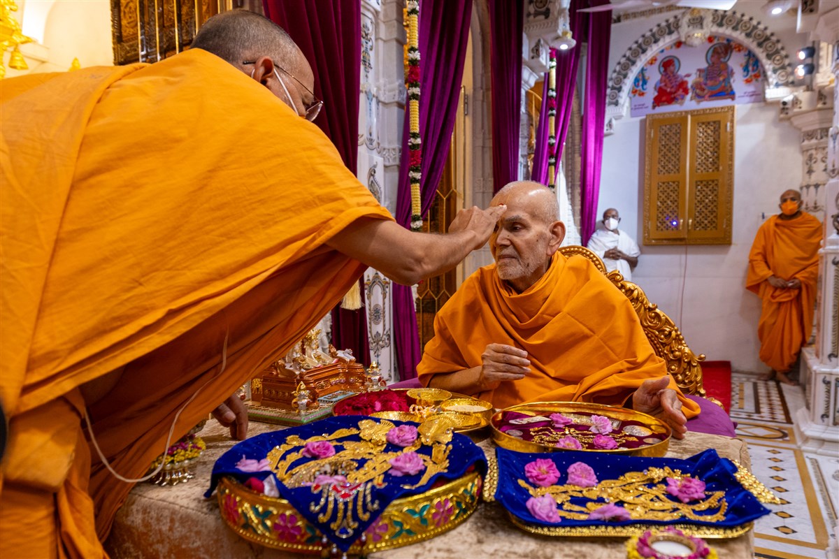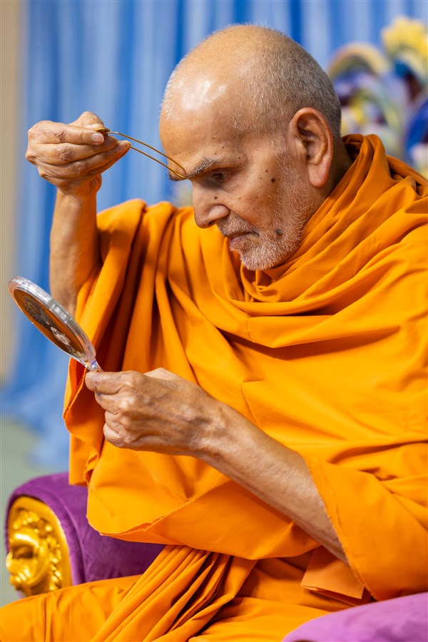 Param Pujya Mahant Swami Maharaj applies a tilak on his forehead