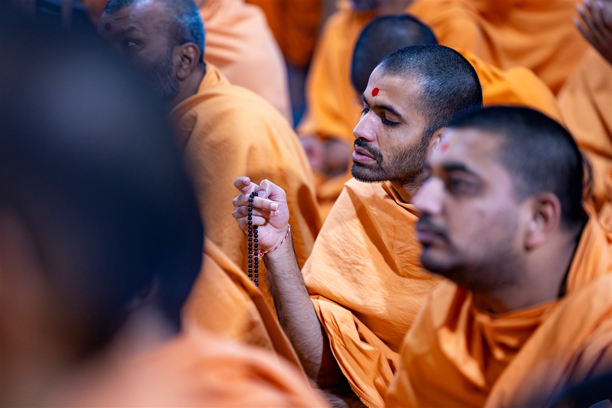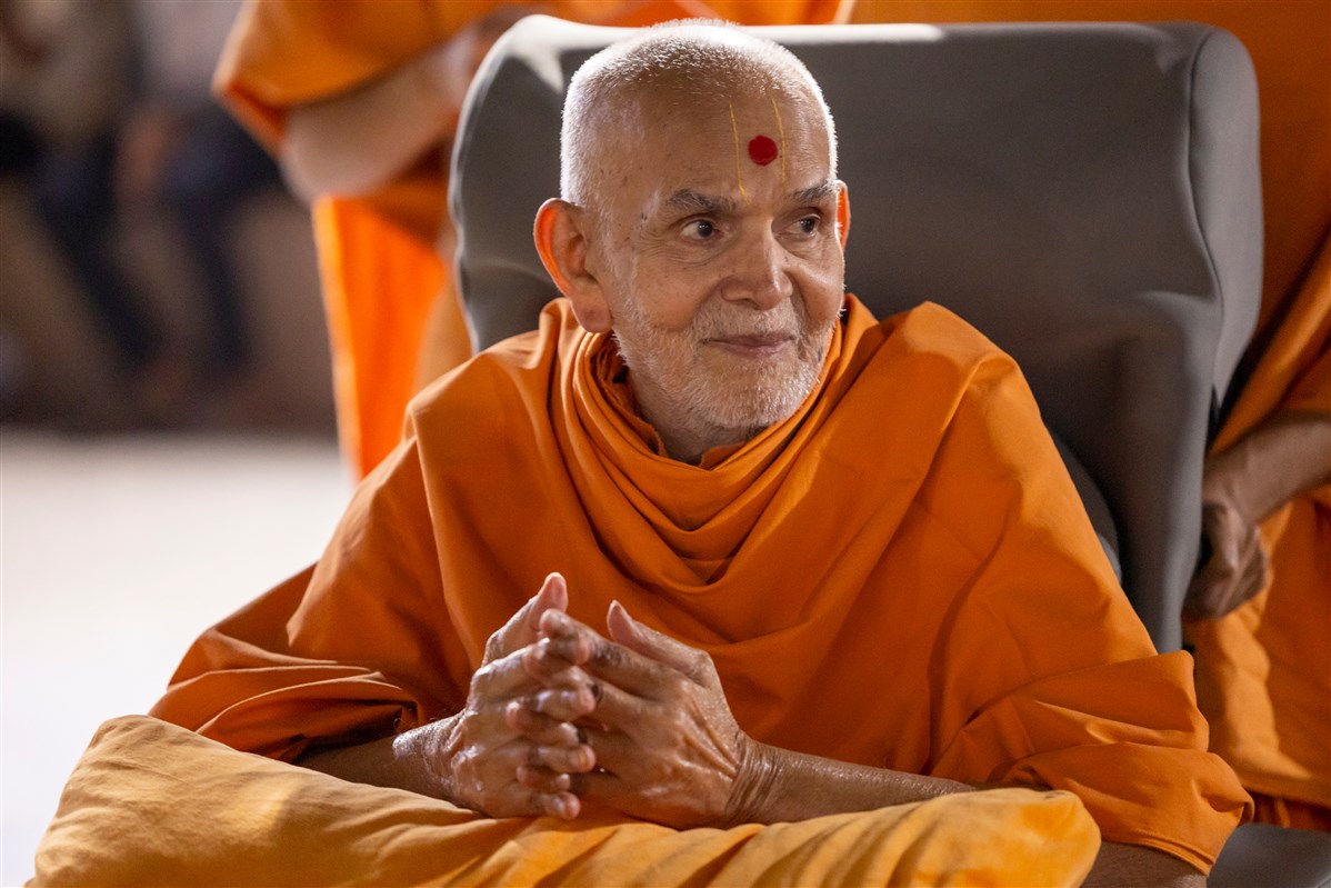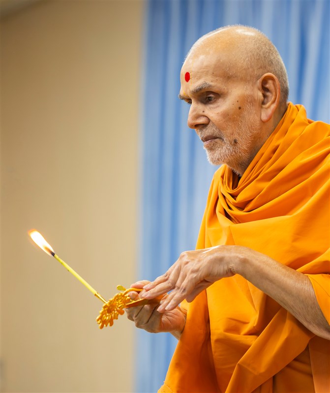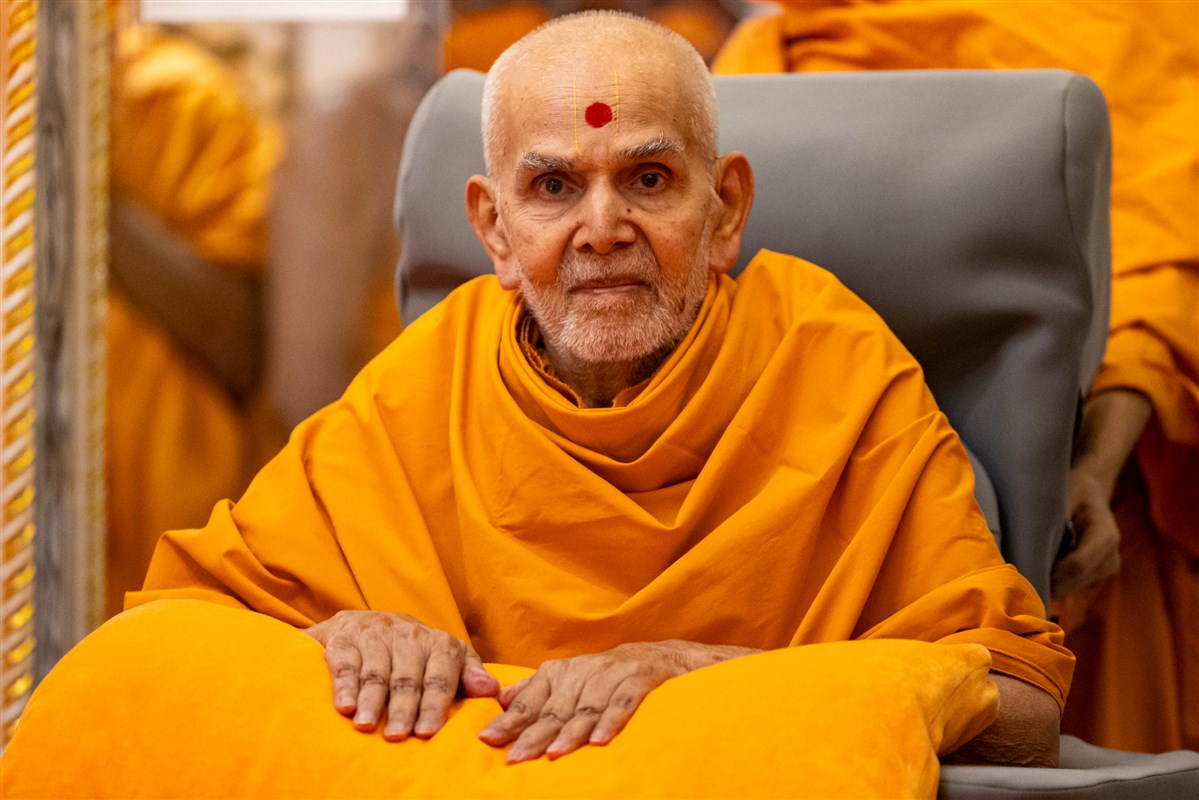Param Pujya Mahant Swami Maharaj applies a tilak on his forehead