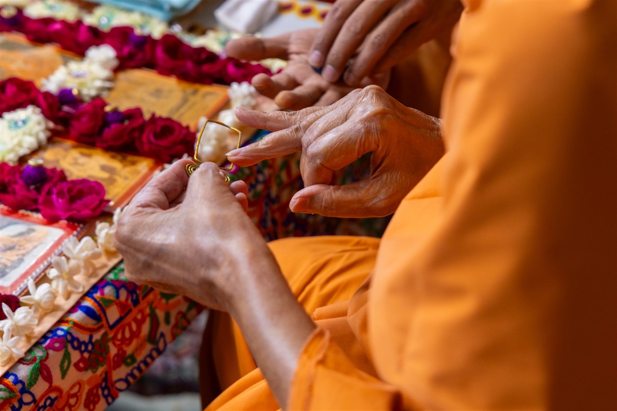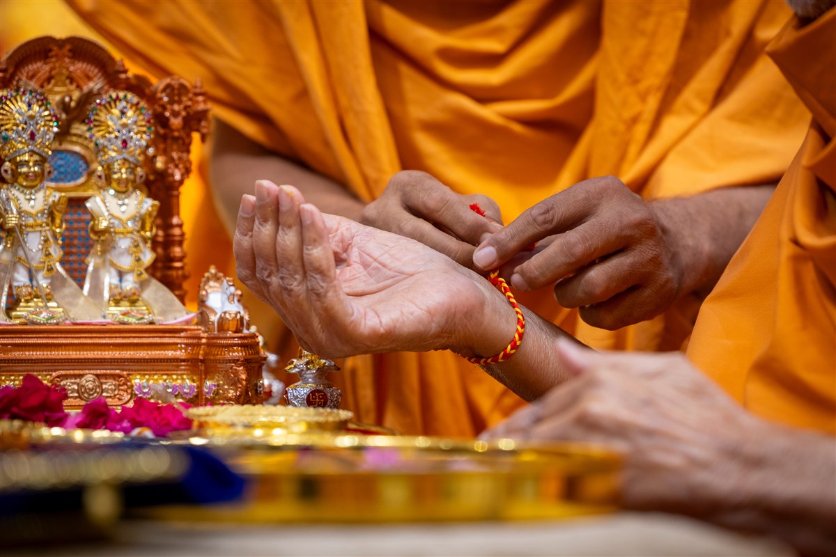 Divyapurush Swami ties a nadachhadi to Swamishri