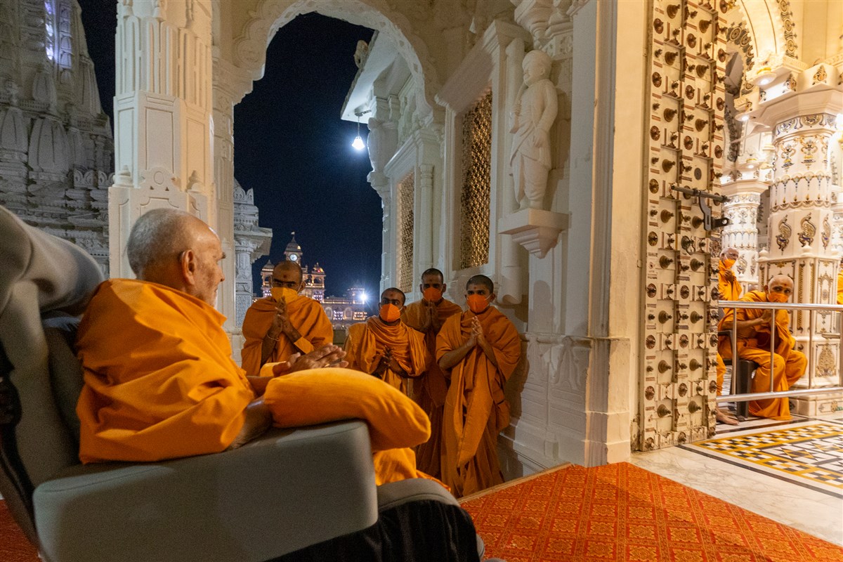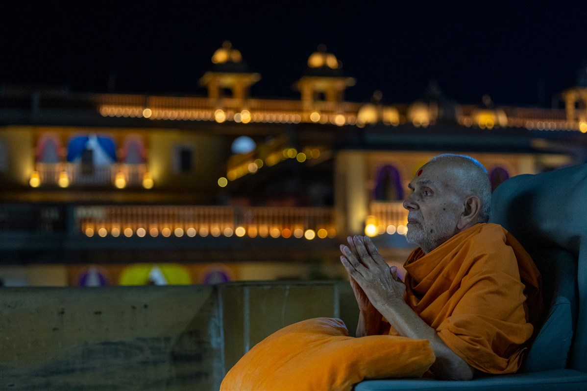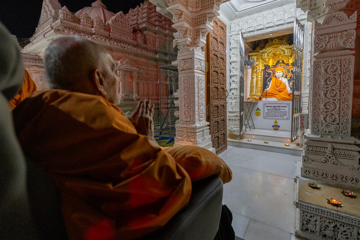Swamishri engrossed in darshan of Brahmaswarup Pramukh Swami Maharaj