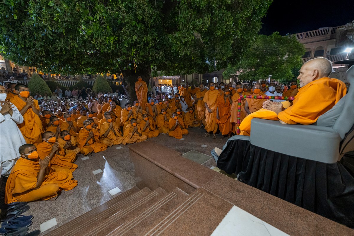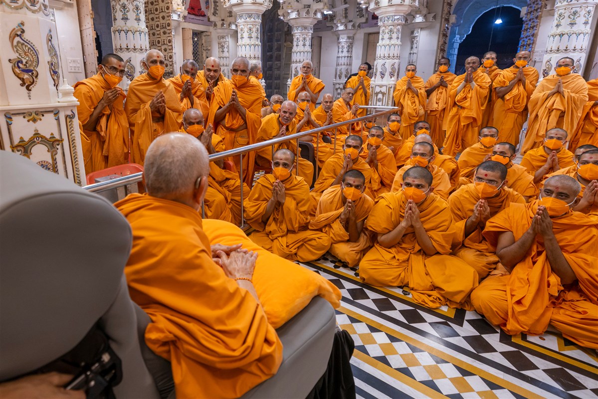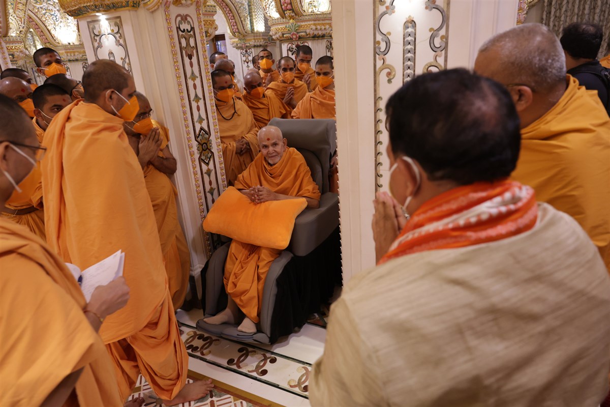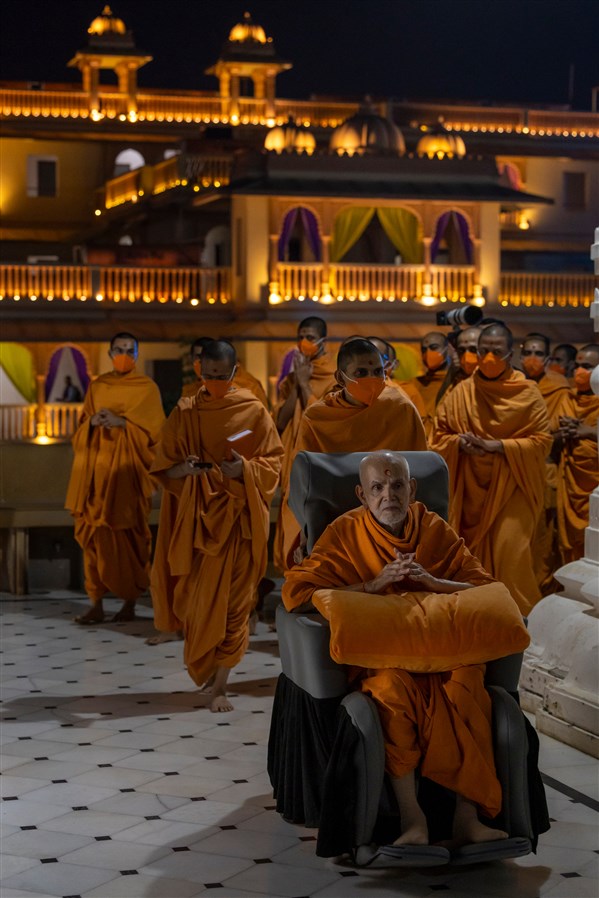 Swamishri engrossed in darshan of Brahmaswarup Pramukh Swami Maharaj