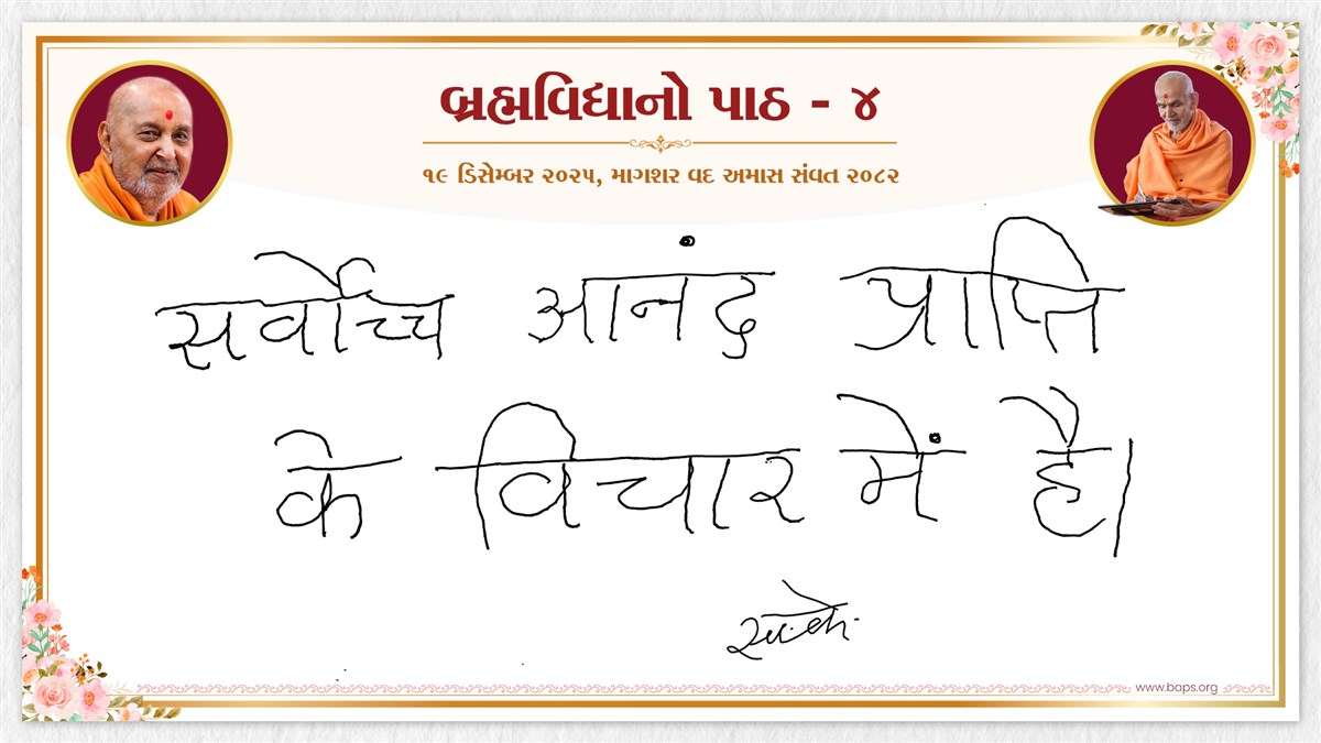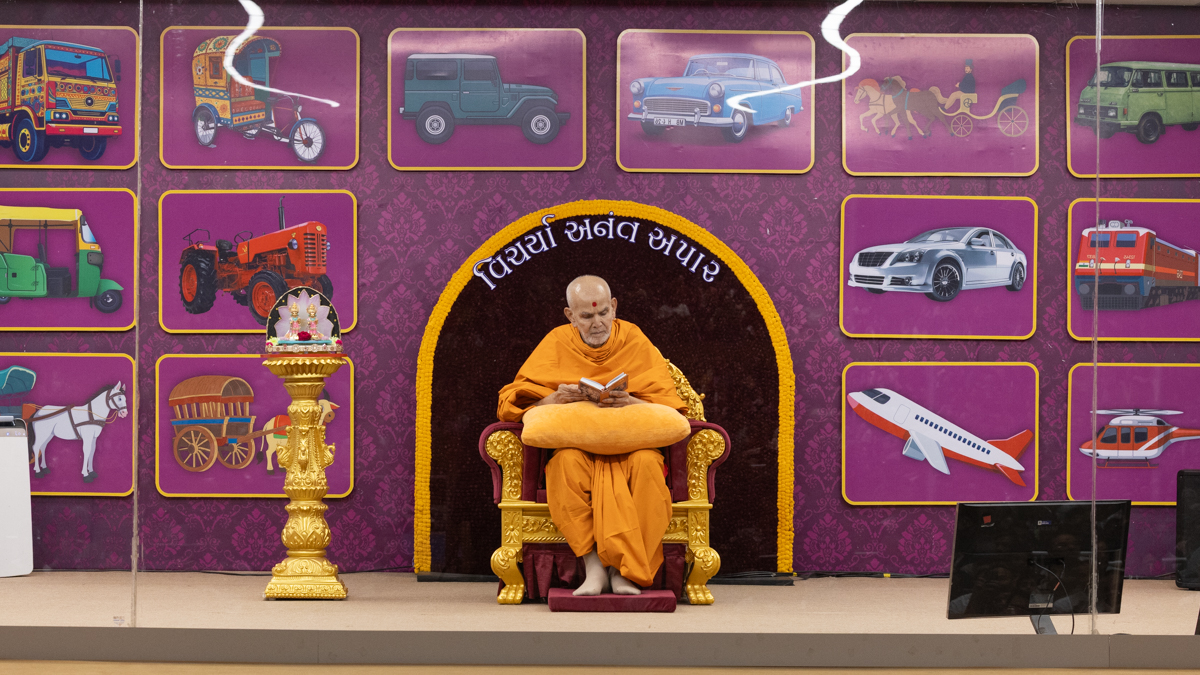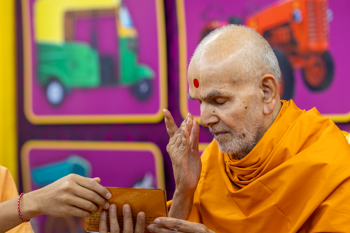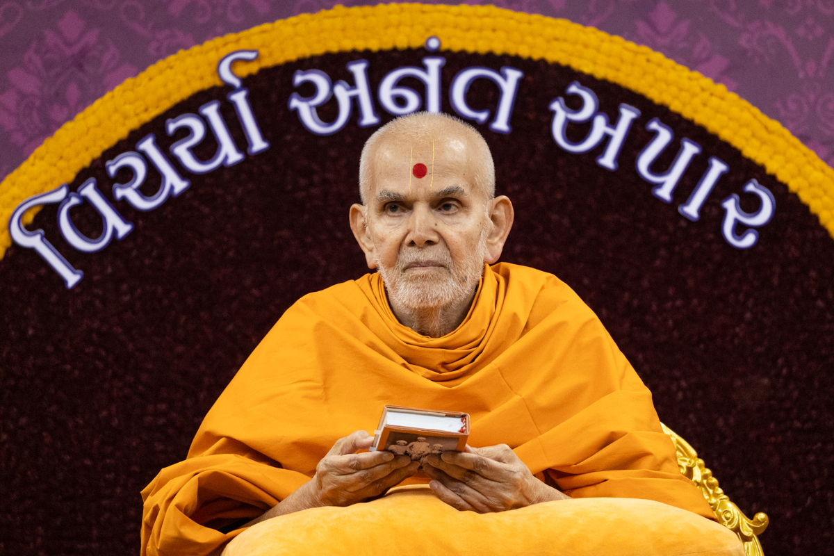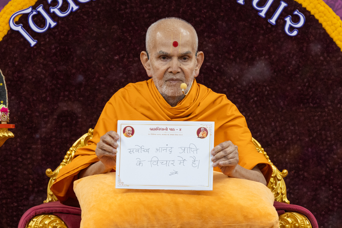 Swamishri displays a message for Dhanurmas