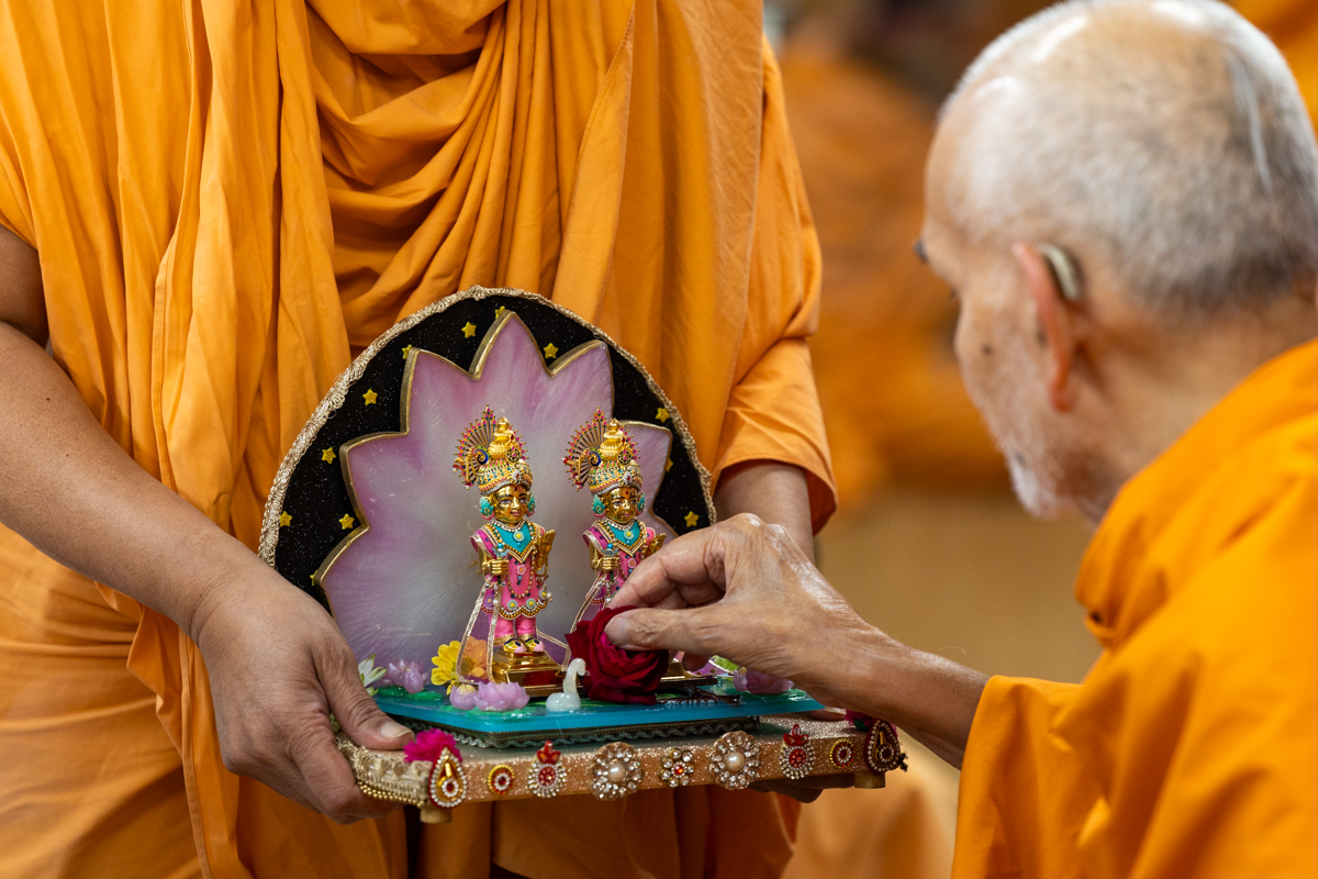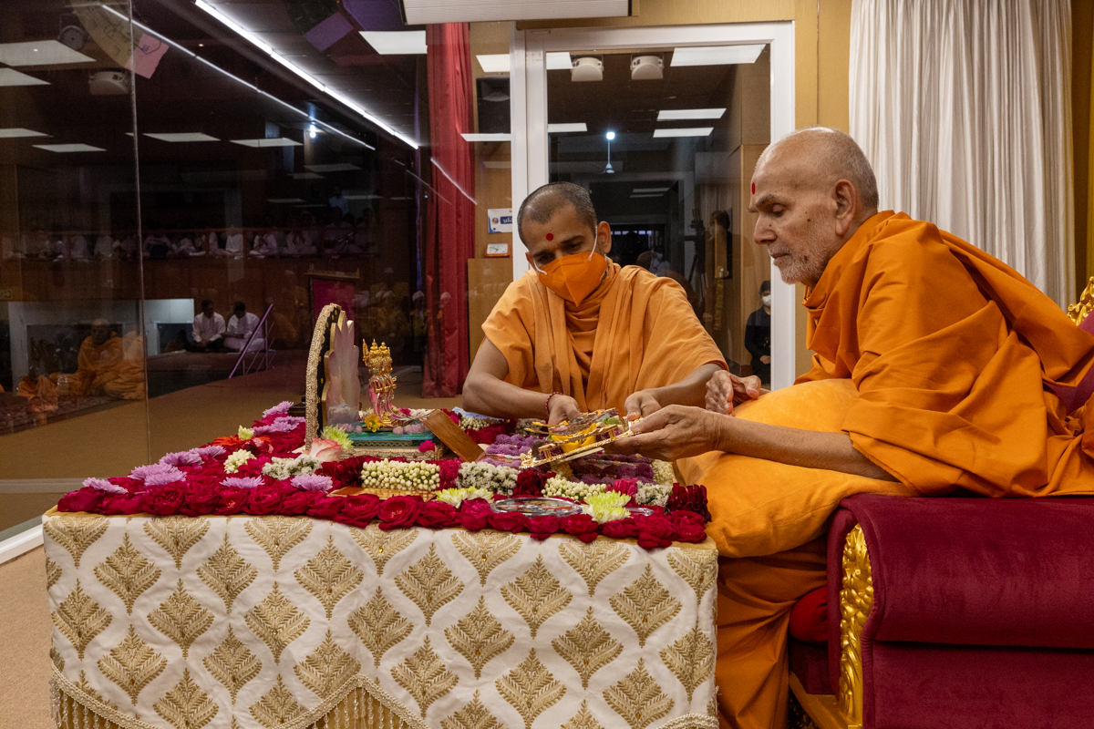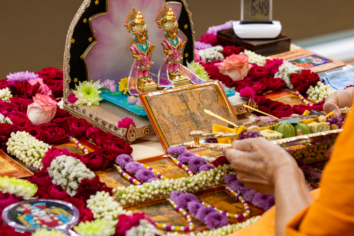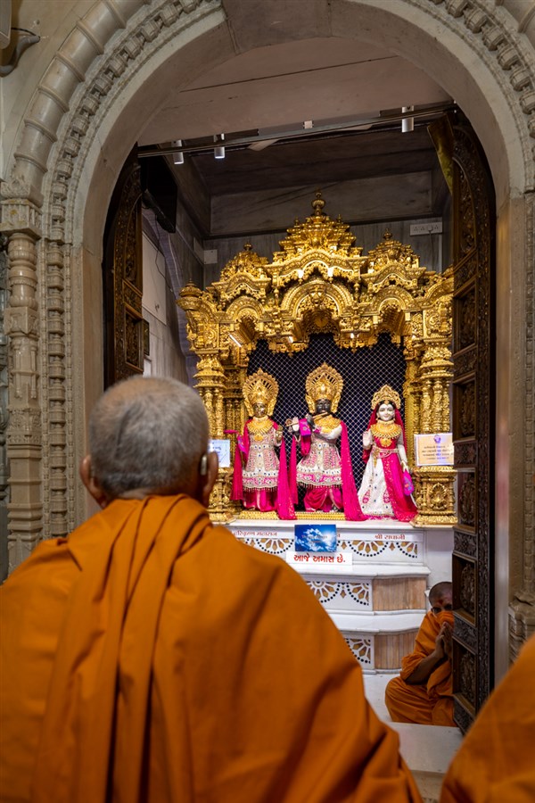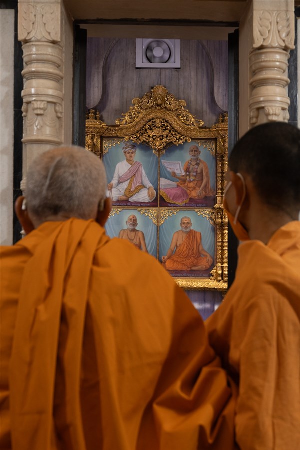 Swamis doing Swamishri's puja darshan