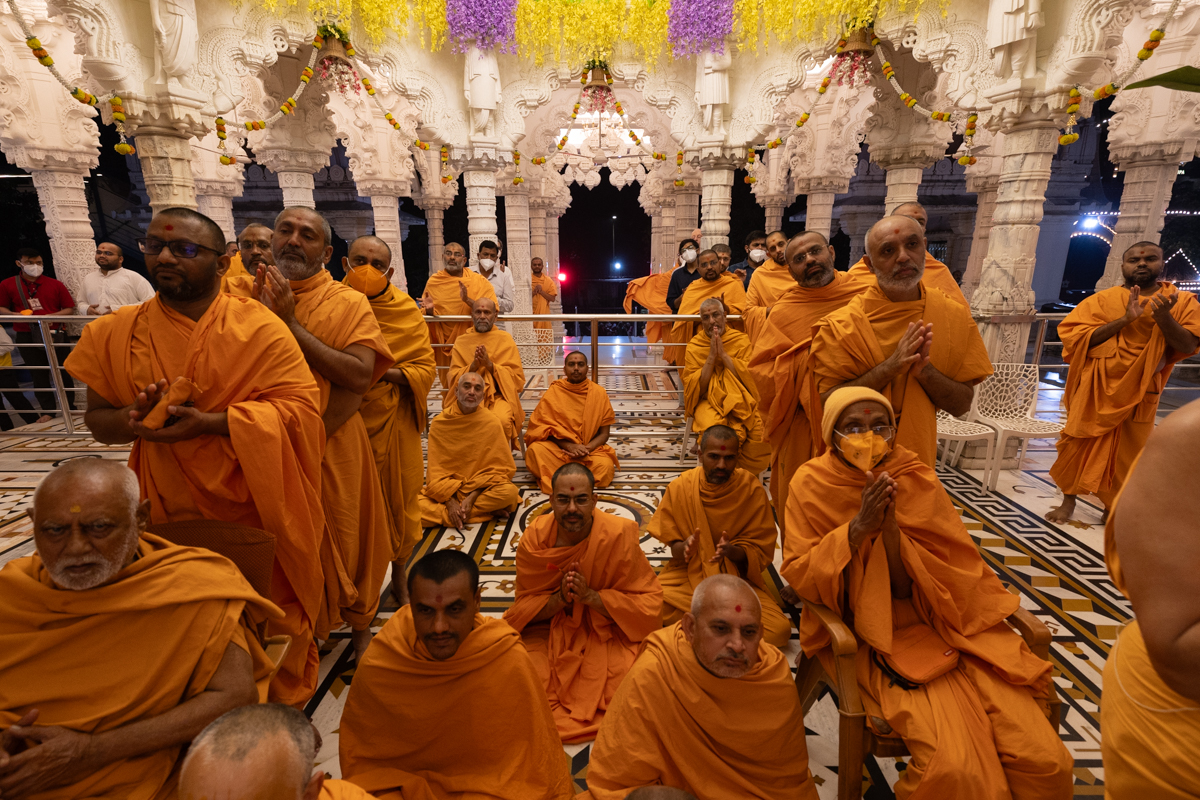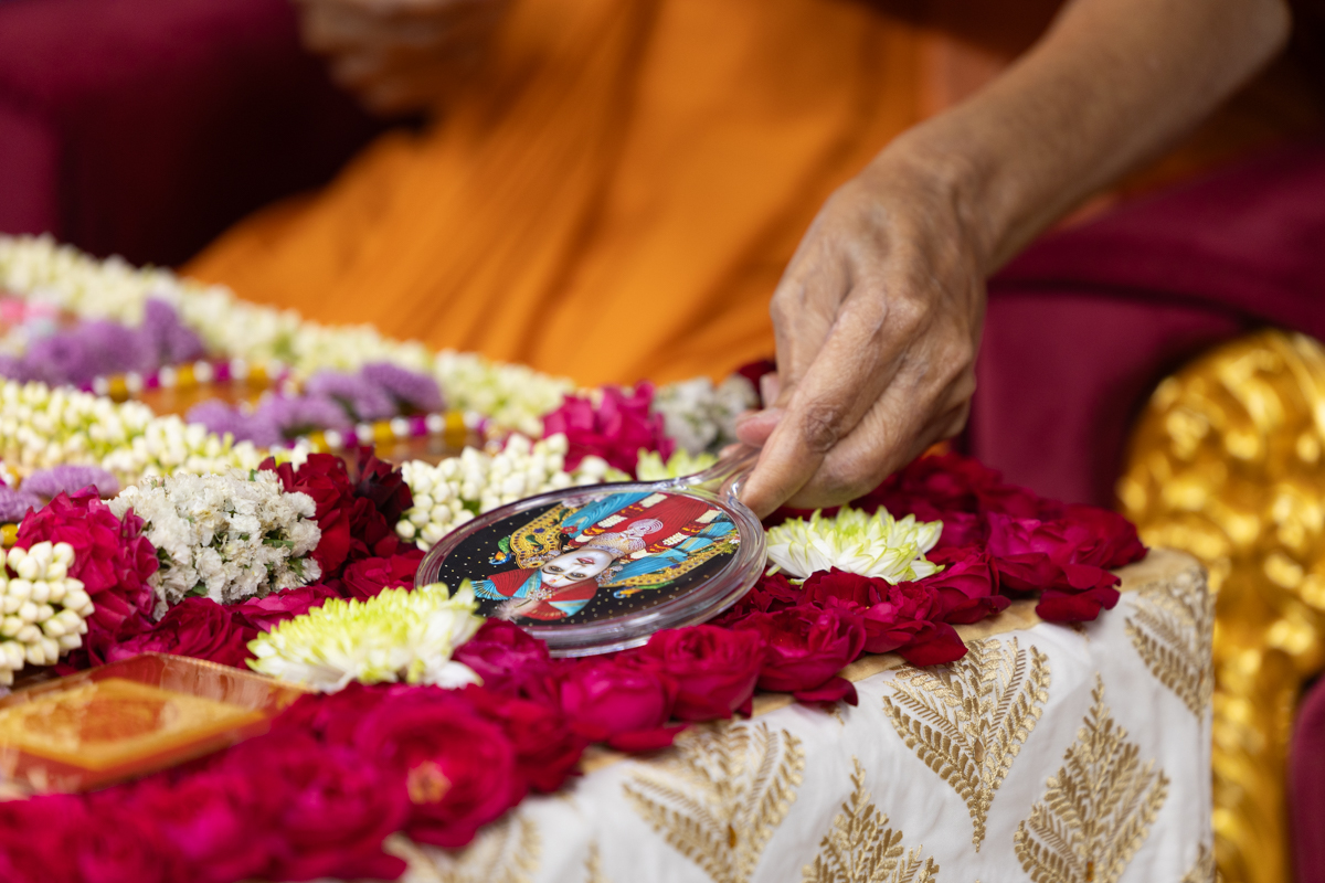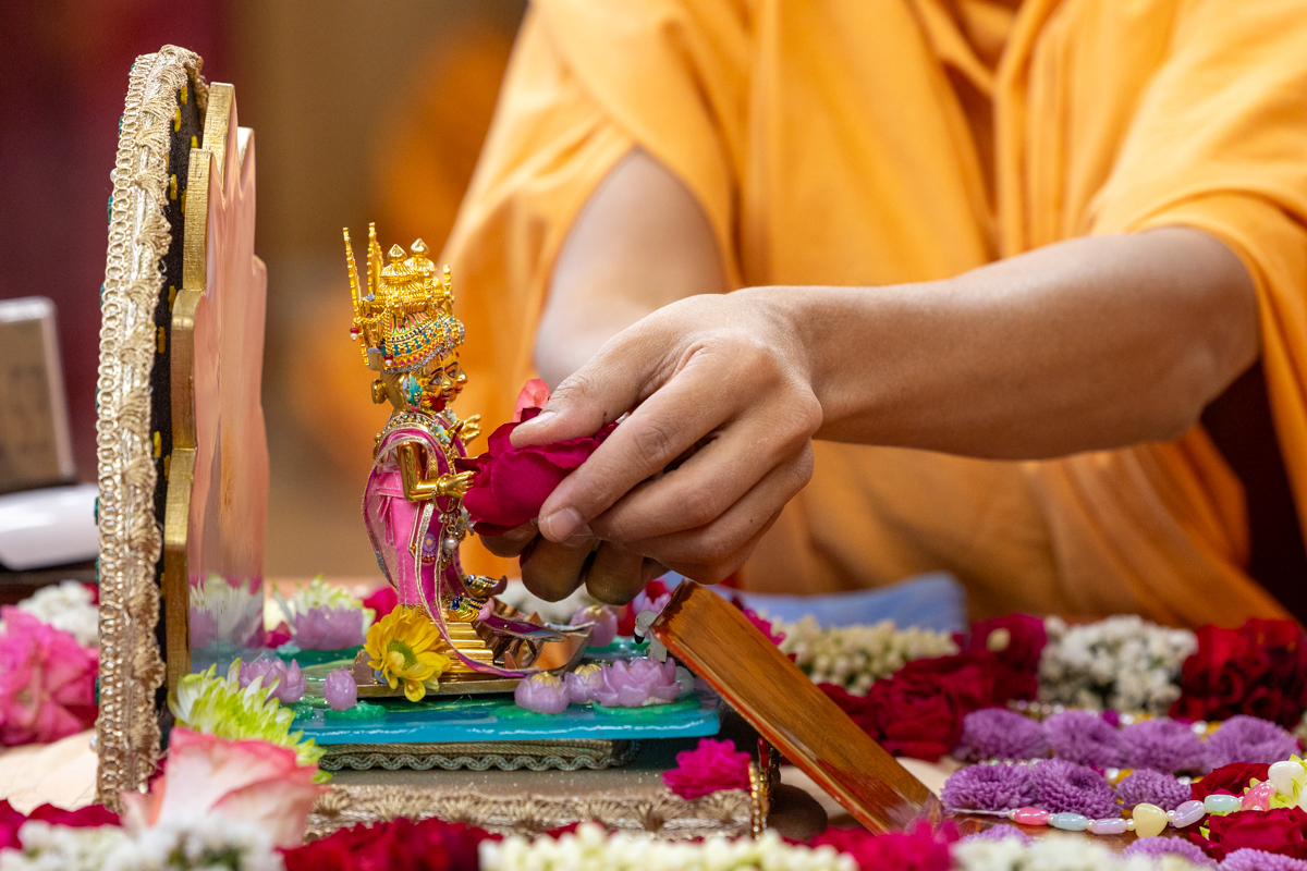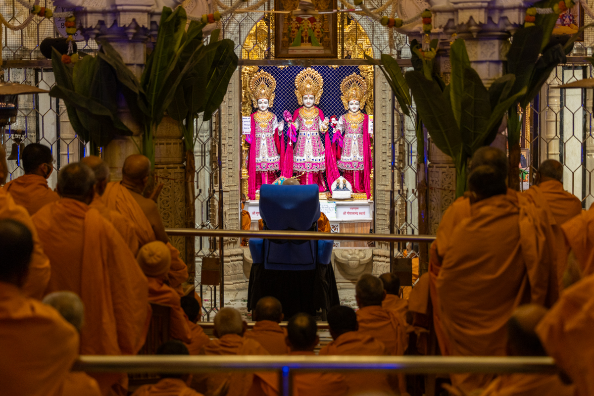Swamis doing Swamishri's puja darshan