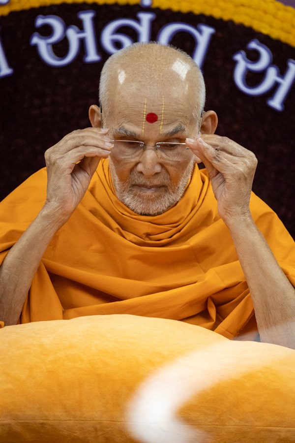 Swamishri wears glasses