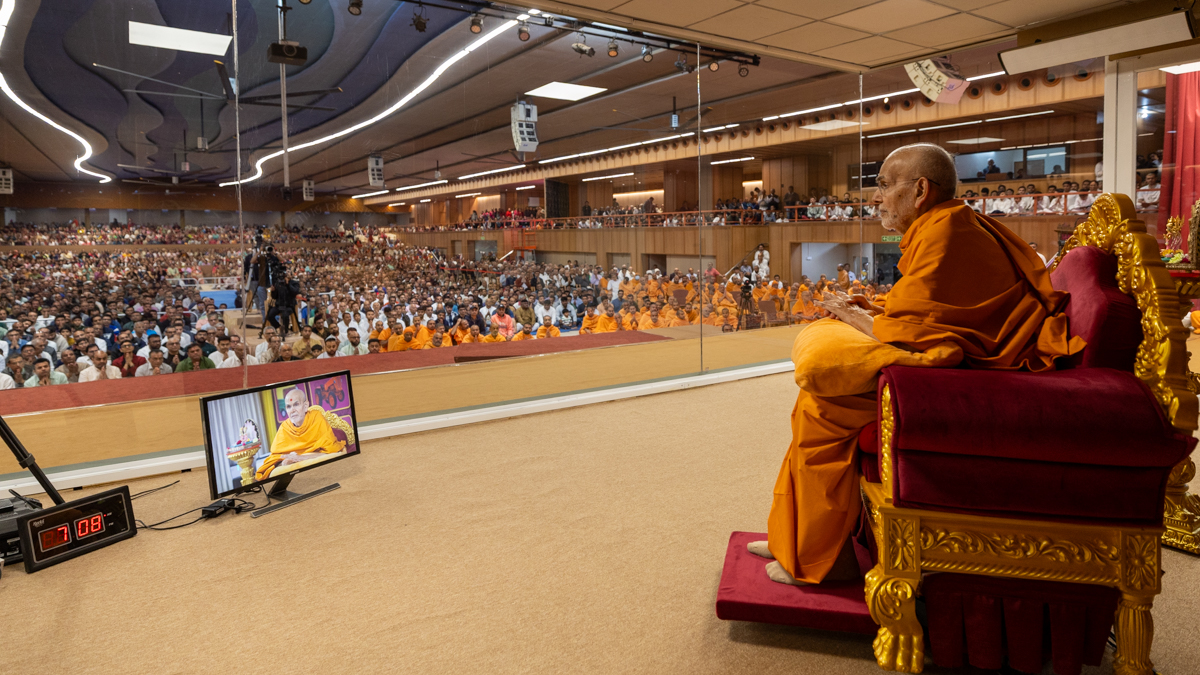 Swamishri blesses during the afternoon assembly