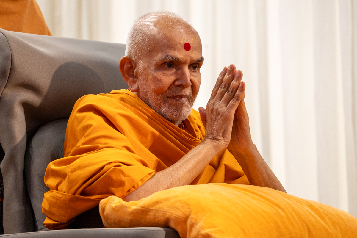 Swamishri greets all with folded hands