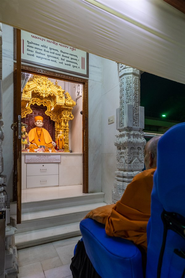 Swamishri engrossed in darshan of Brahmaswarup Shastriji Maharaj