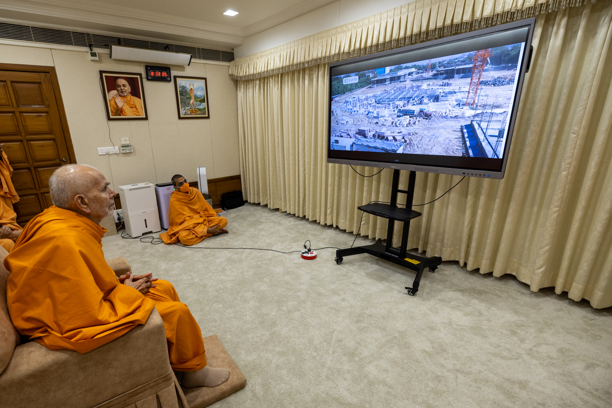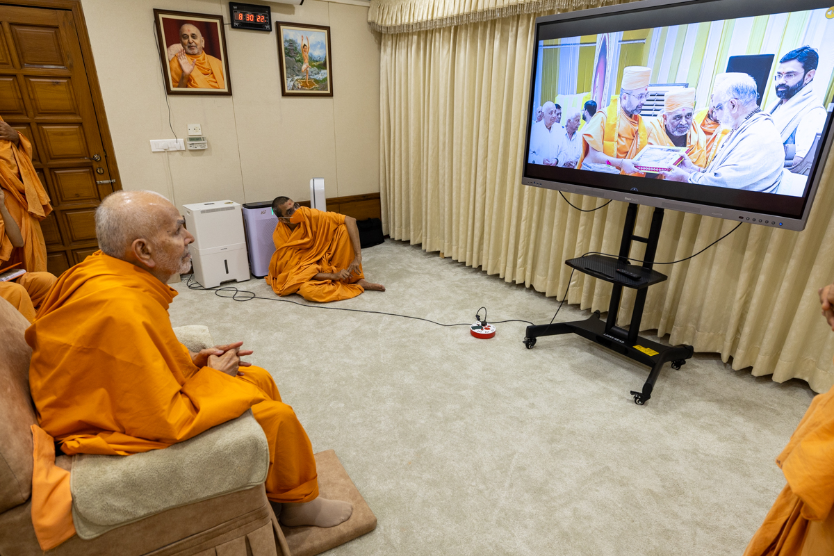 Swamishri watches satsang videos