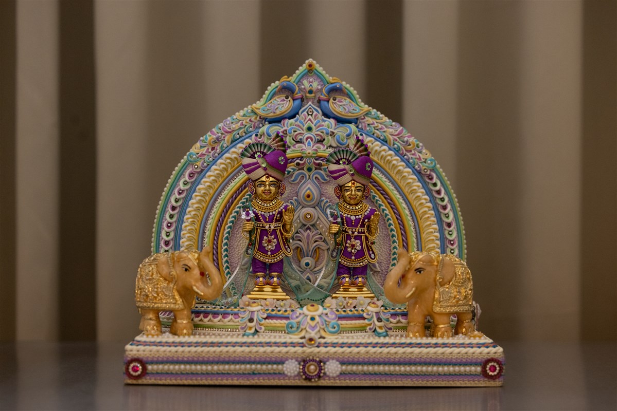 Swamishri engrossed in darshan of Bhagwan Swaminarayan and Aksharbrahma Gunatitanand Swami