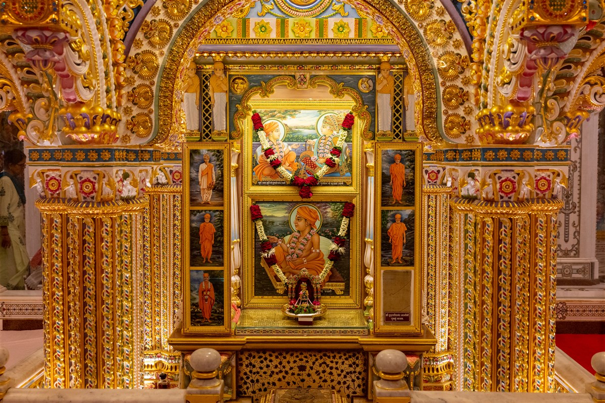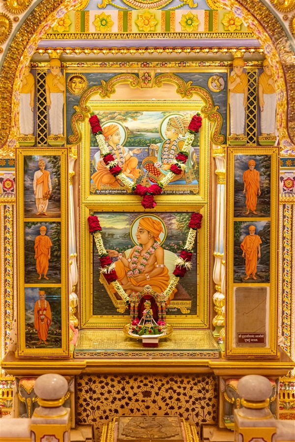 Swamishri engrossed in darshan of Shri Harikrishna Maharaj and Shri Gunatitanand Swami Maharaj