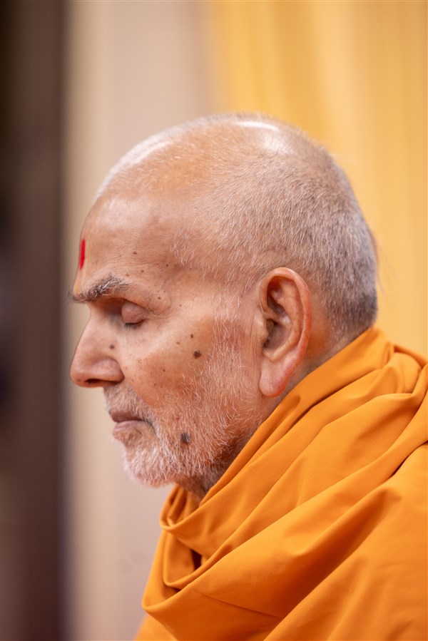 Swamishri meditates in his daily puja