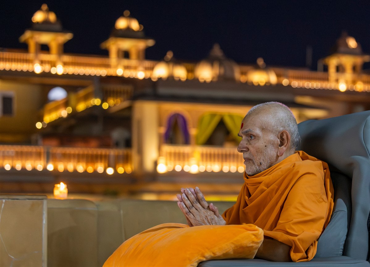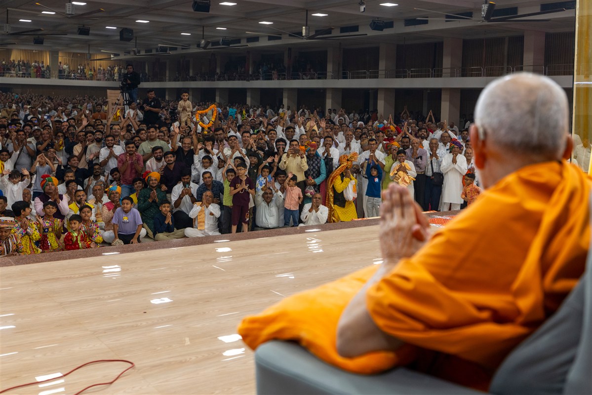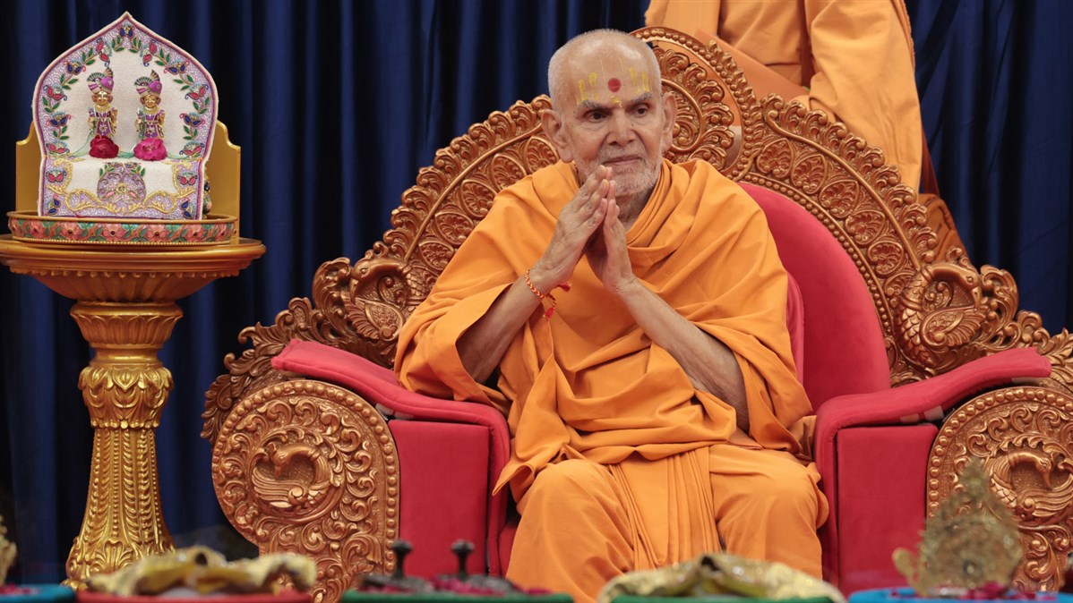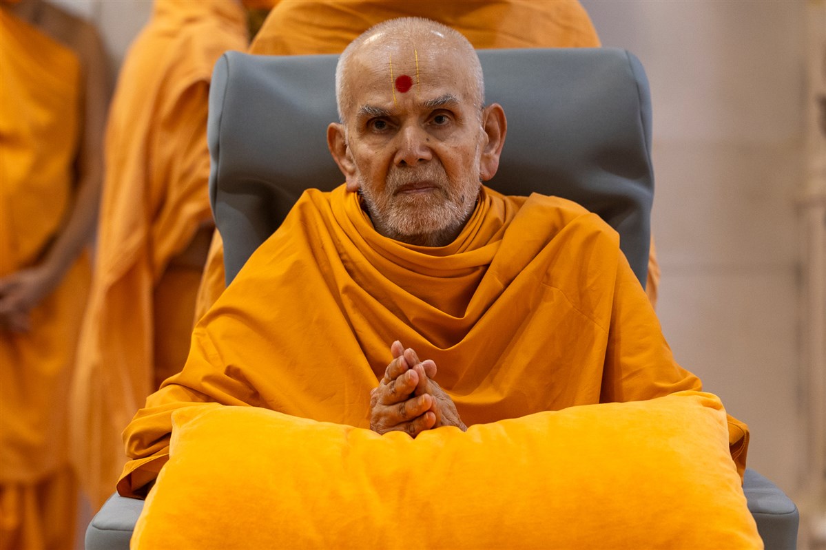 Swamishri greets all with folded hands