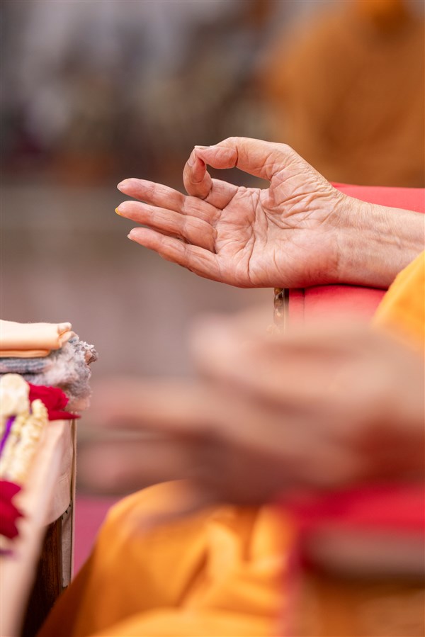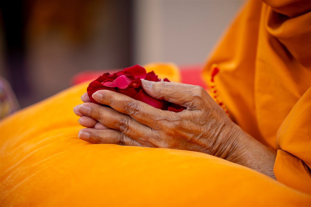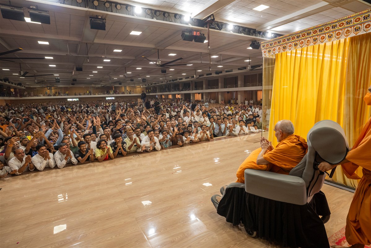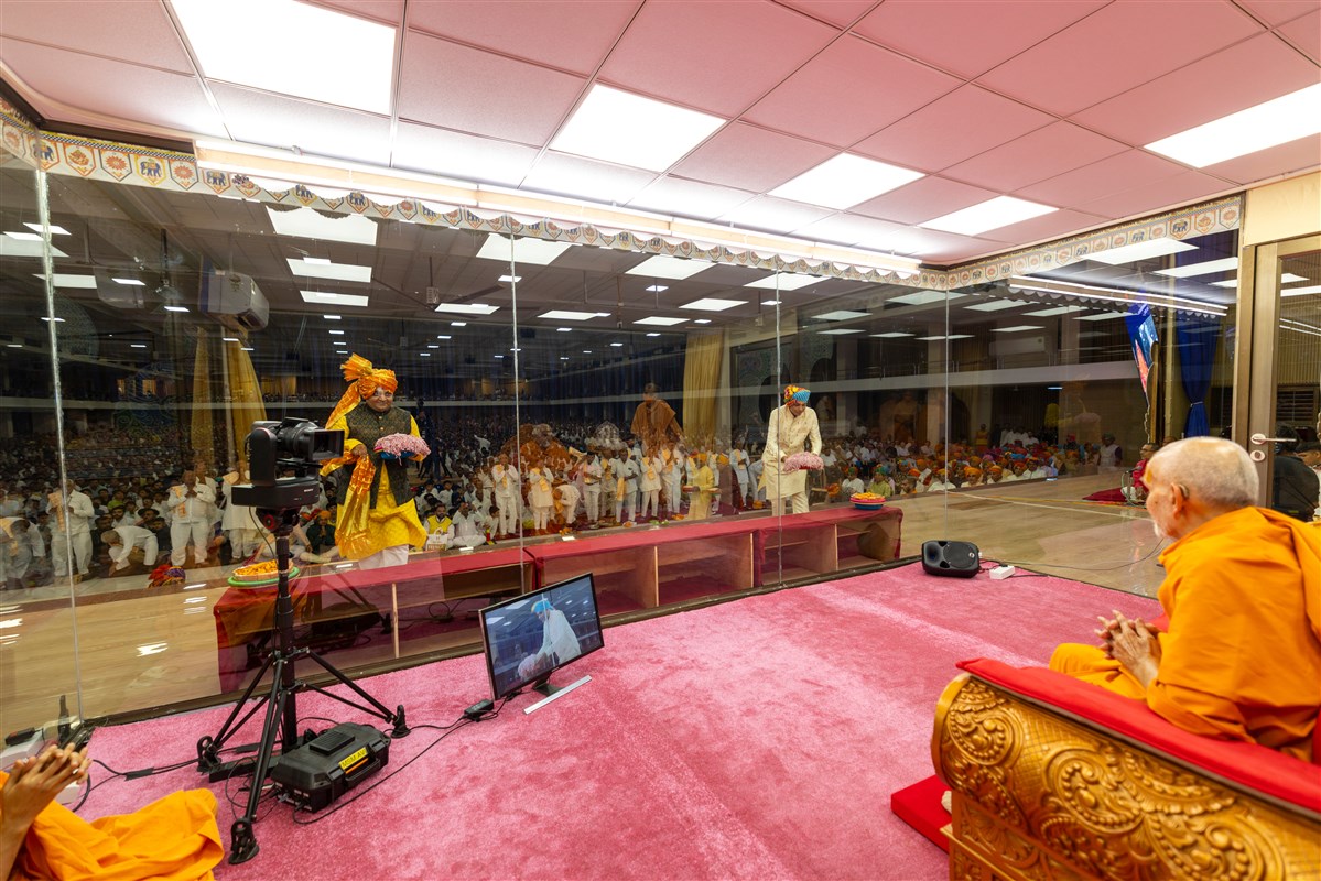 Swamishri greets all with folded hands