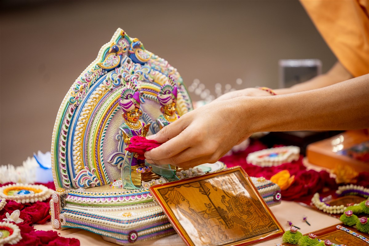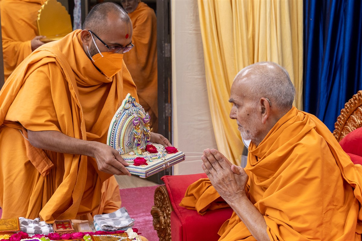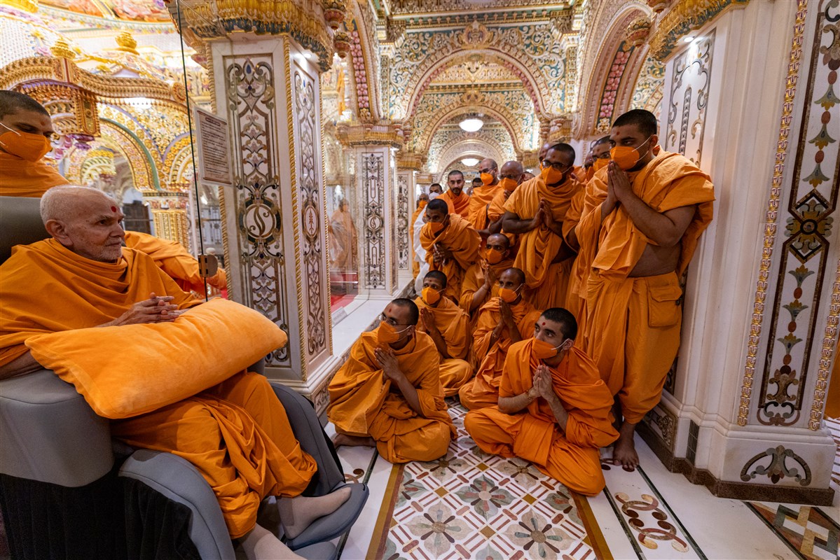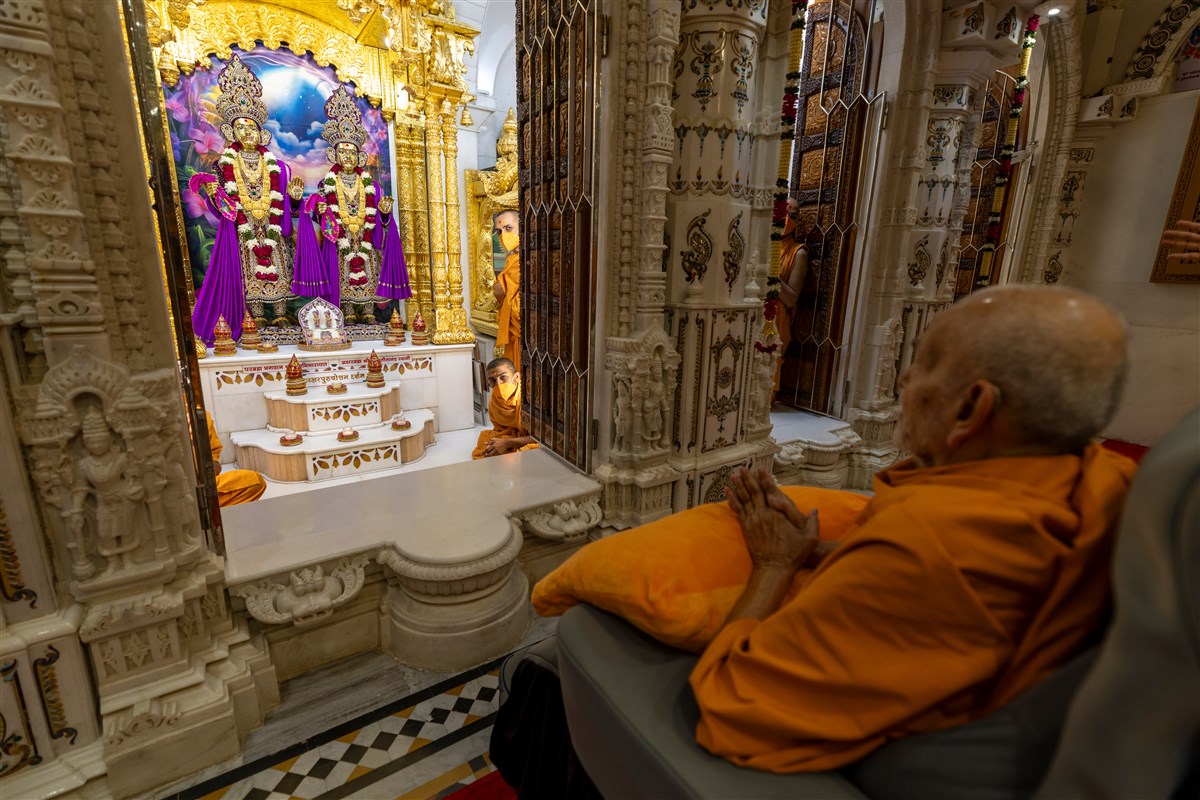 Swamis doing Swamishri's puja darshan